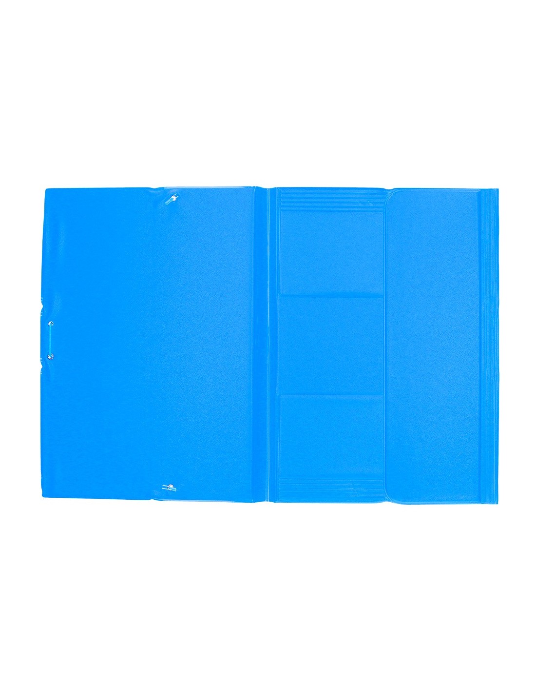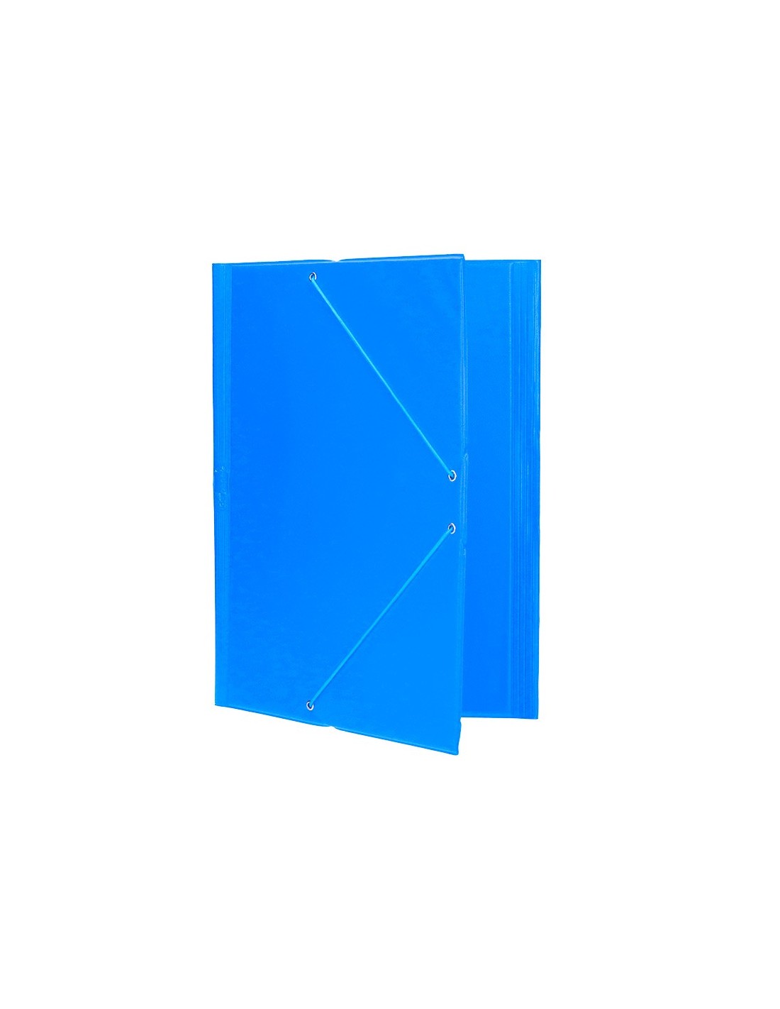 Carpeta fabricada en cartón forrado en plástico soldado. 3 mm de grosor. Colores brillantes y vivos. Cierre por gomas. Lomo flexible. Tres solapas. Tamaño folio.