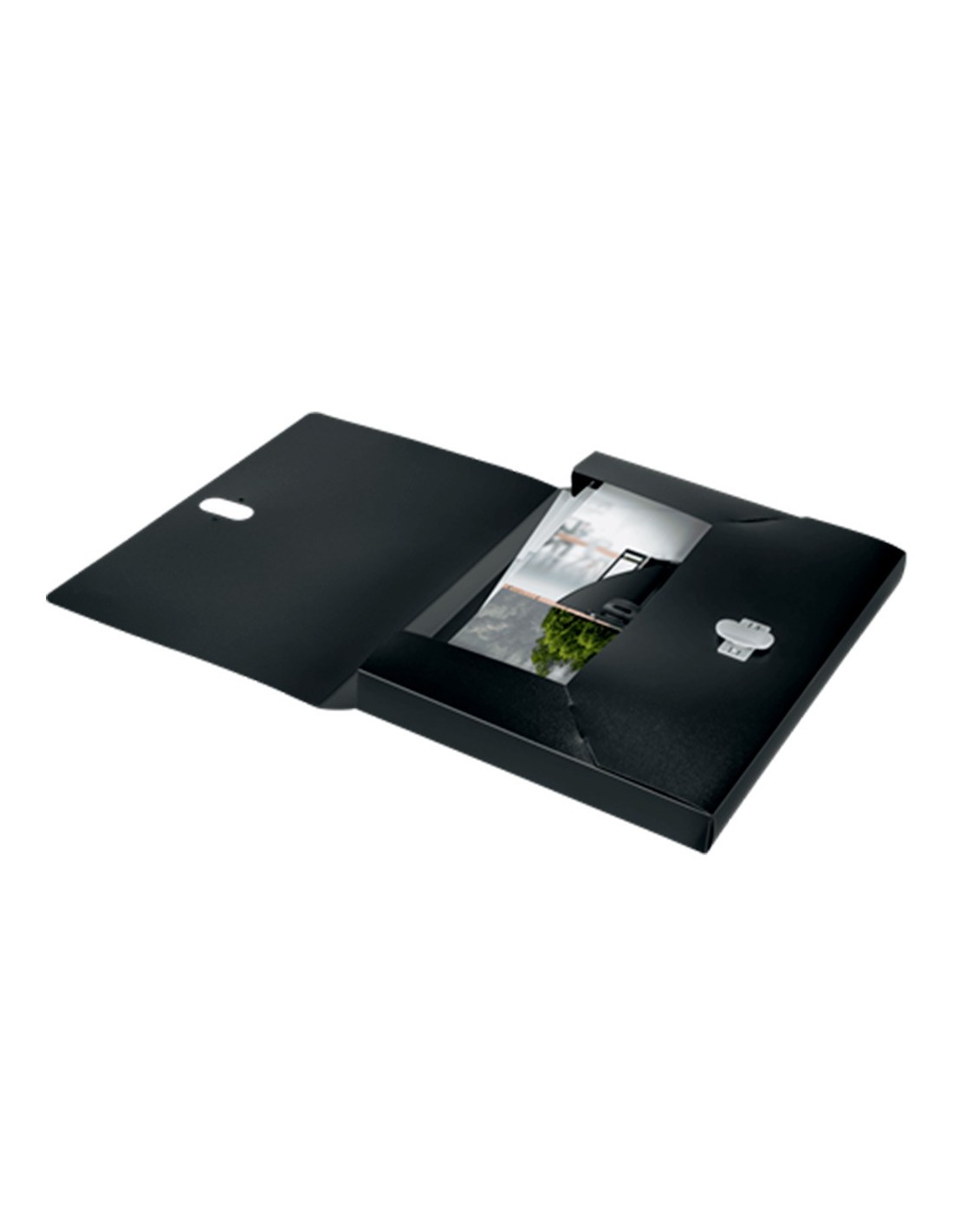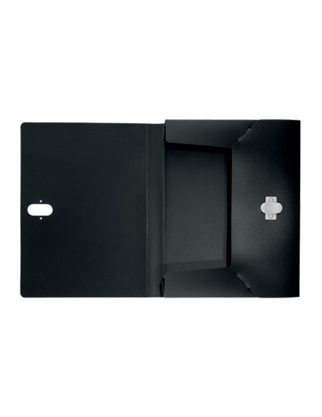 Carpeta de proyectos fabricada en polipropileno. Formato DIN A4. Ancho de lomo: 38 mm. Color negro.
