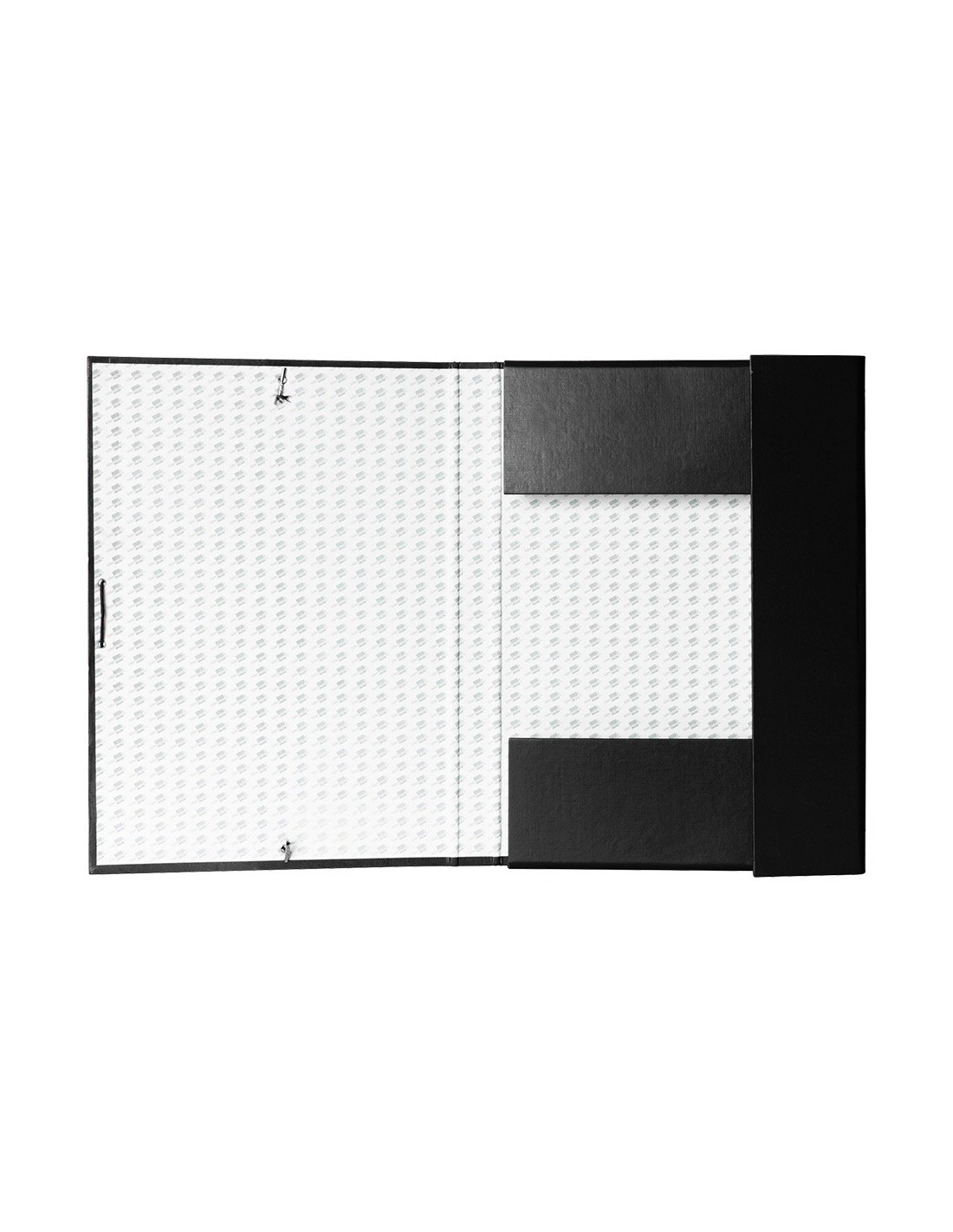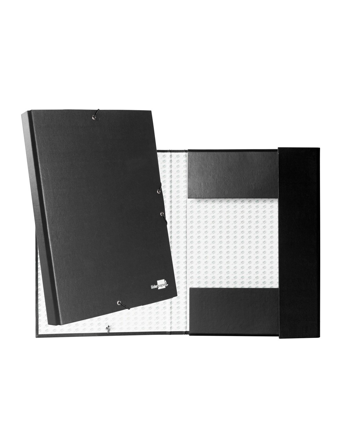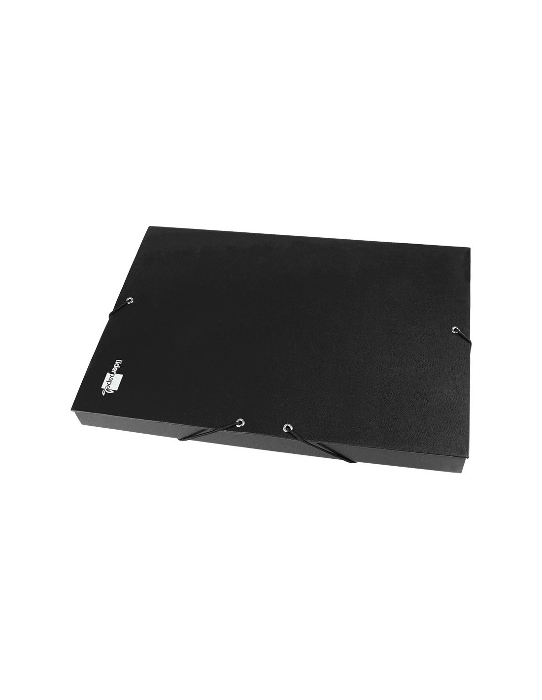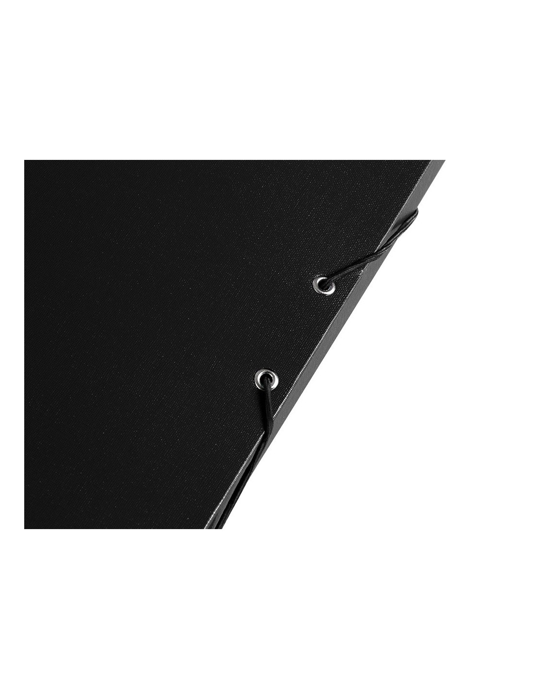 Carpeta para proyectos fabricada en cartón entrecolado de 1,9 mm de espesor, forrado gofrado tela de PVC y guarda interior. Con etiqueta identificativa para pegar en el lomo. Cierre con elástico. Tamaño folio. Medidas: 250 x 350 mm.