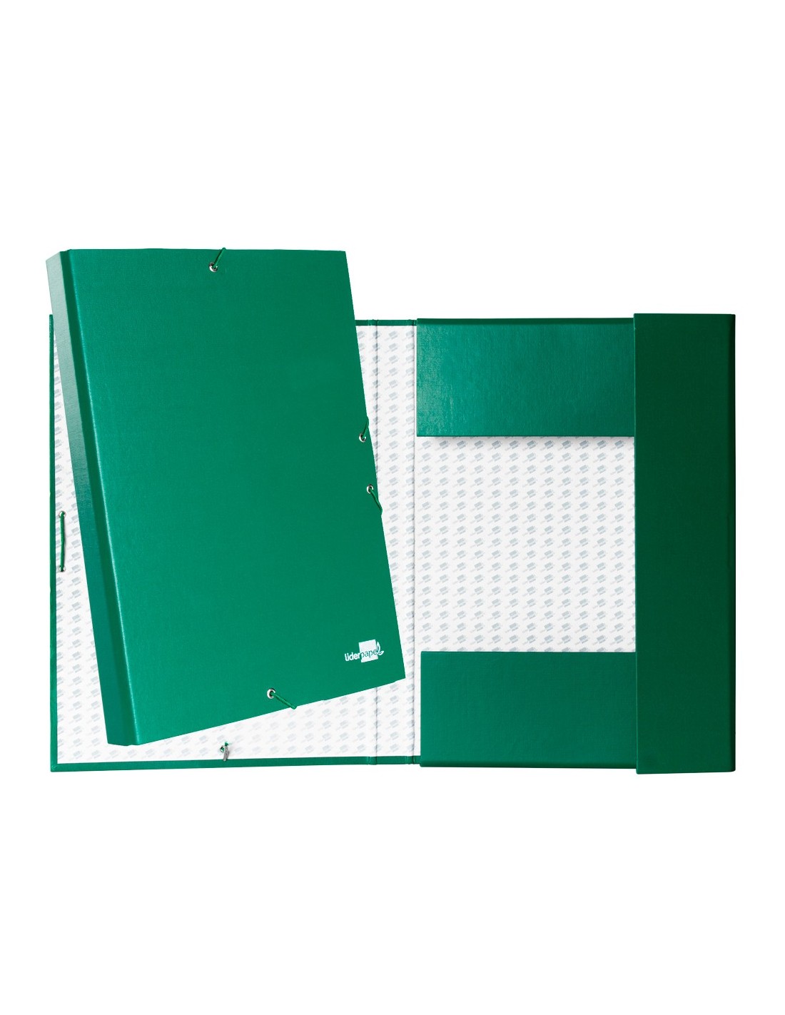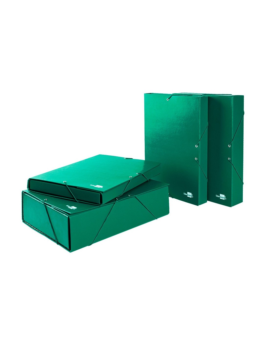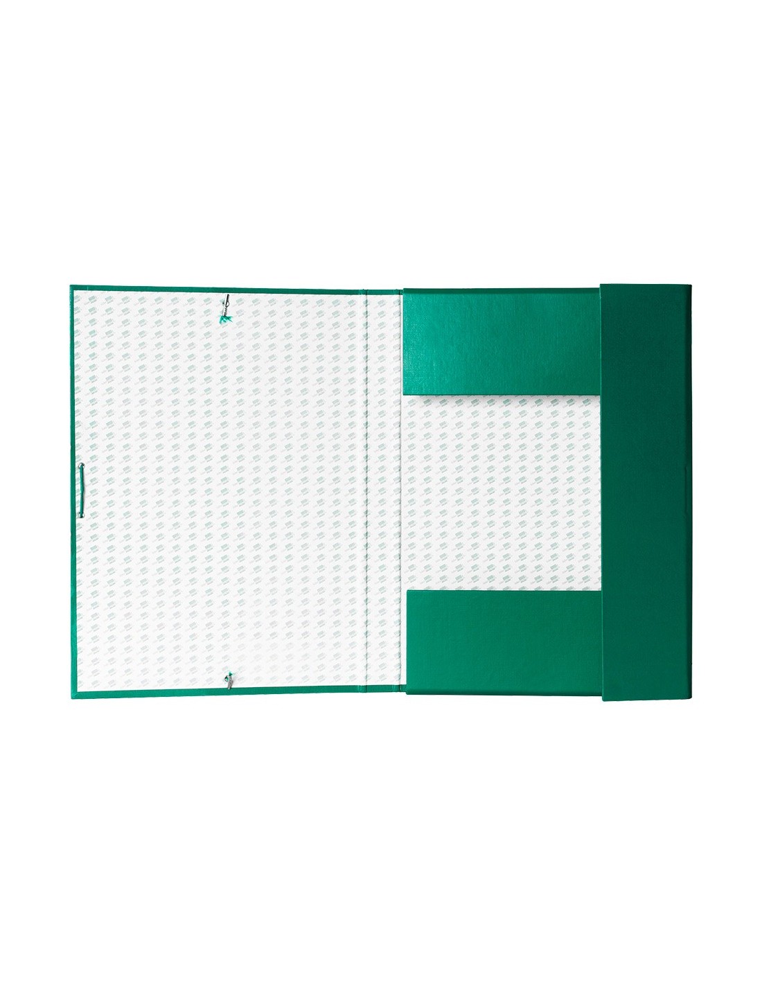 Carpeta para proyectos fabricada en cartón entrecolado de 1,9 mm de espesor, forrado gofrado tela de PVC y guarda interior. Con etiqueta identificativa para pegar en el lomo. Cierre con elástico. Tamaño folio. Medidas: 250 x 350 mm.