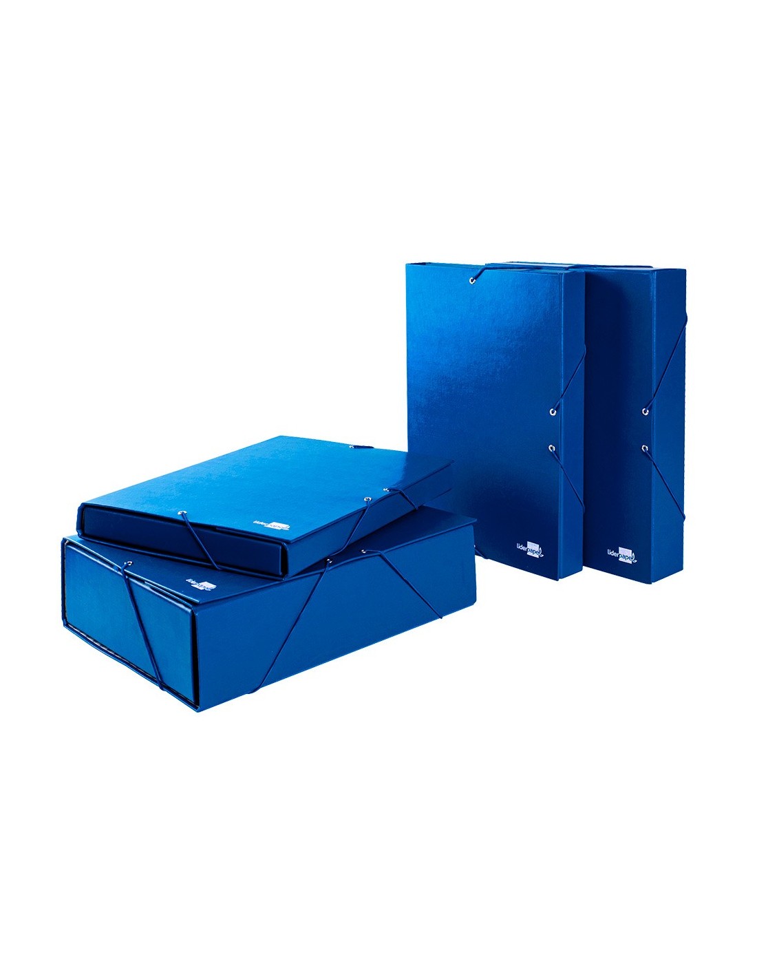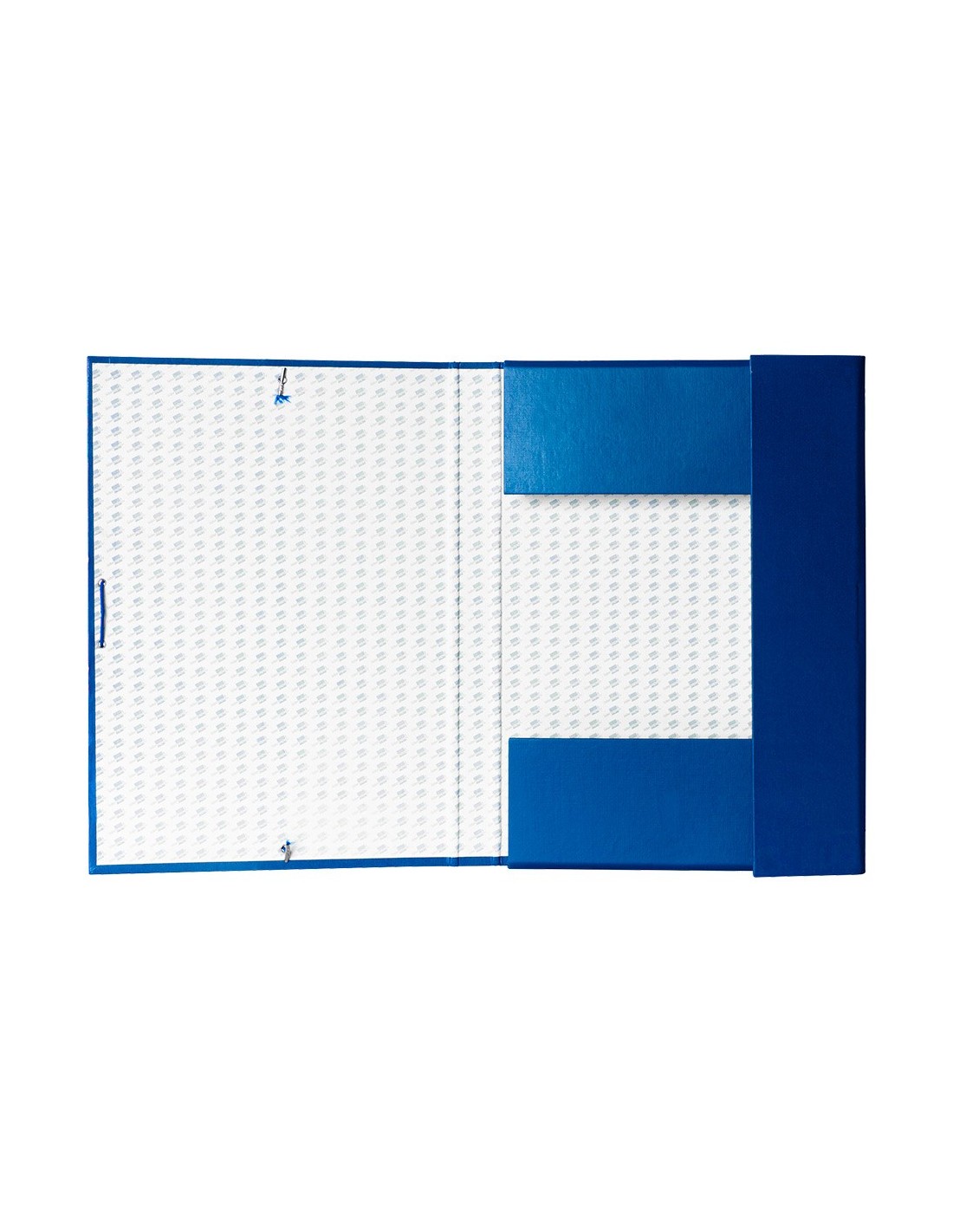 Carpeta para proyectos fabricada en cartón entrecolado de 1,9 mm de espesor, forrado gofrado tela de PVC y guarda interior. Con etiqueta identificativa para pegar en el lomo. Cierre con elástico. Tamaño folio. Medidas: 250 x 350 mm.