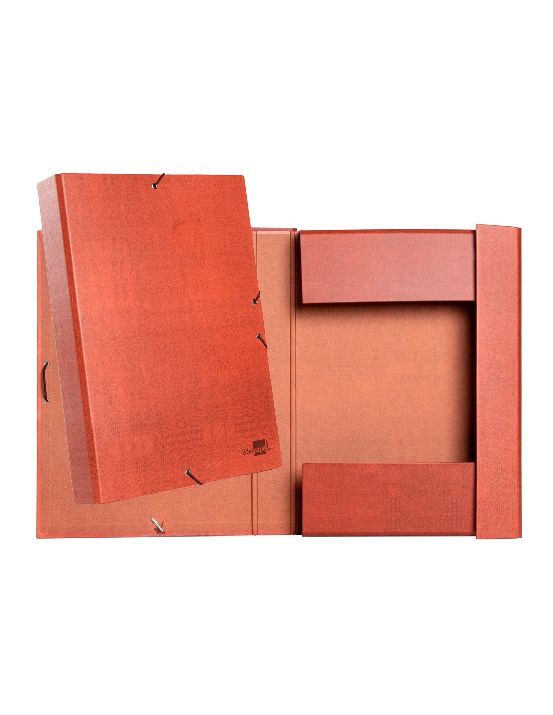 Carpeta para proyectos, fabricada en cartón entrecolado de 1,9 mm de espesor, forrada en papel estucado mate y guarda interior. Cierre con elástico. Tamaño folio. Medidas: 250 x 350 mm.