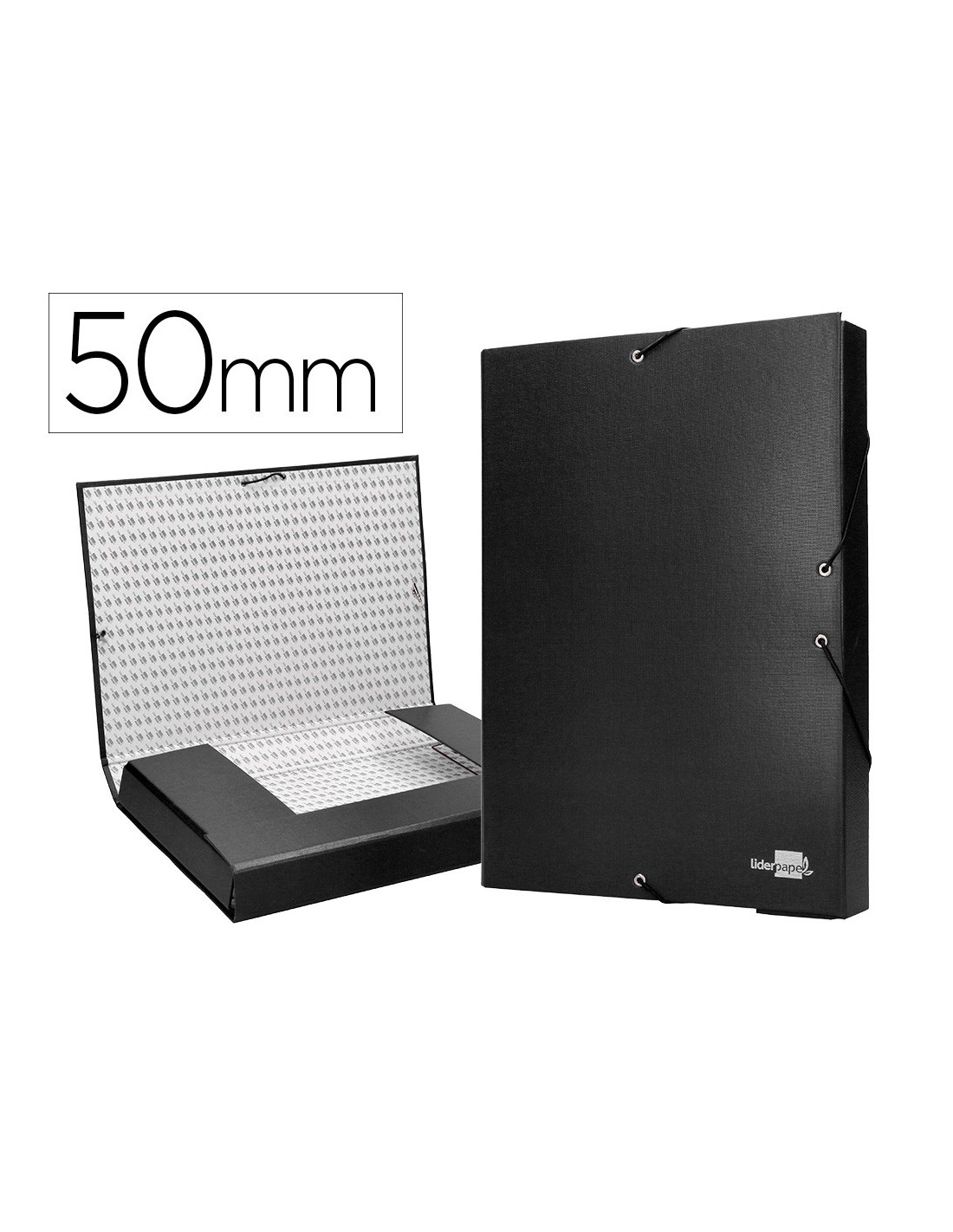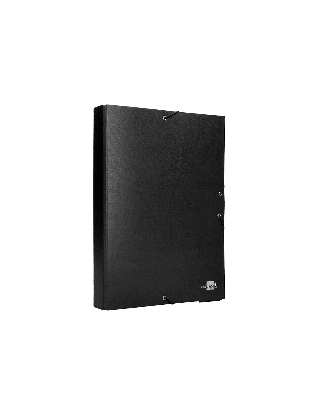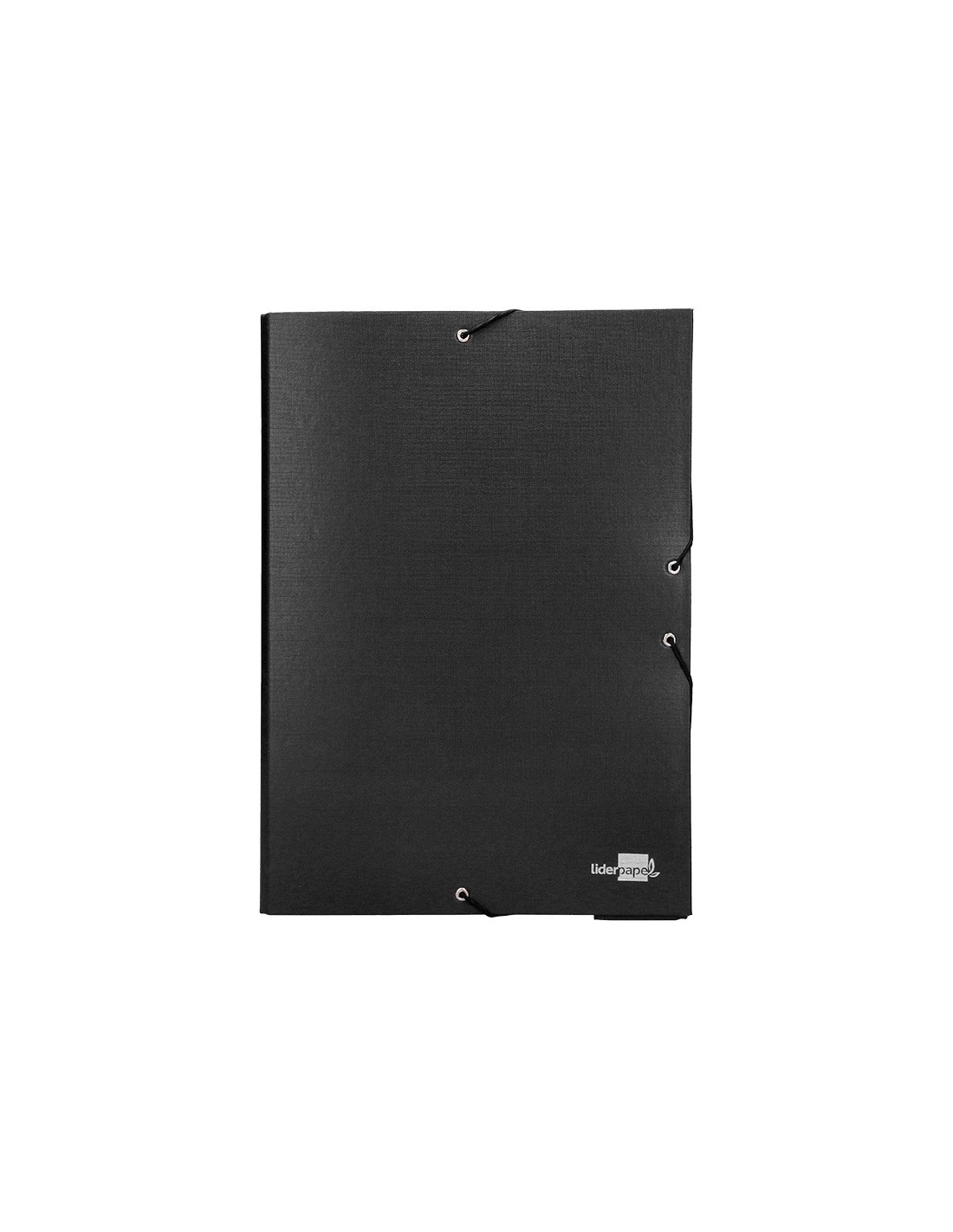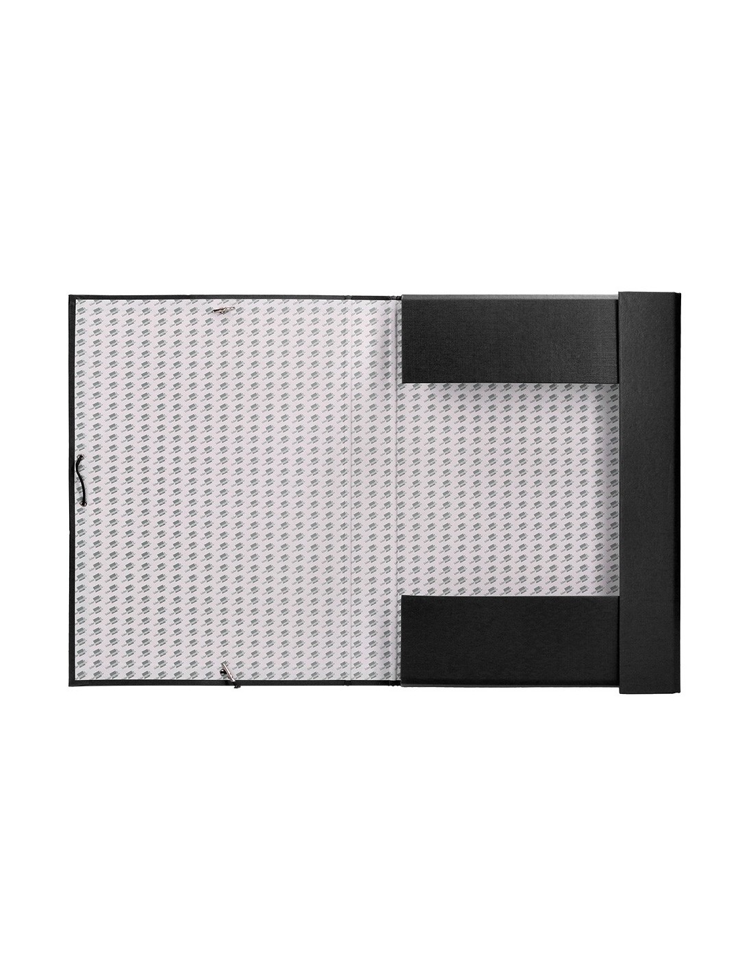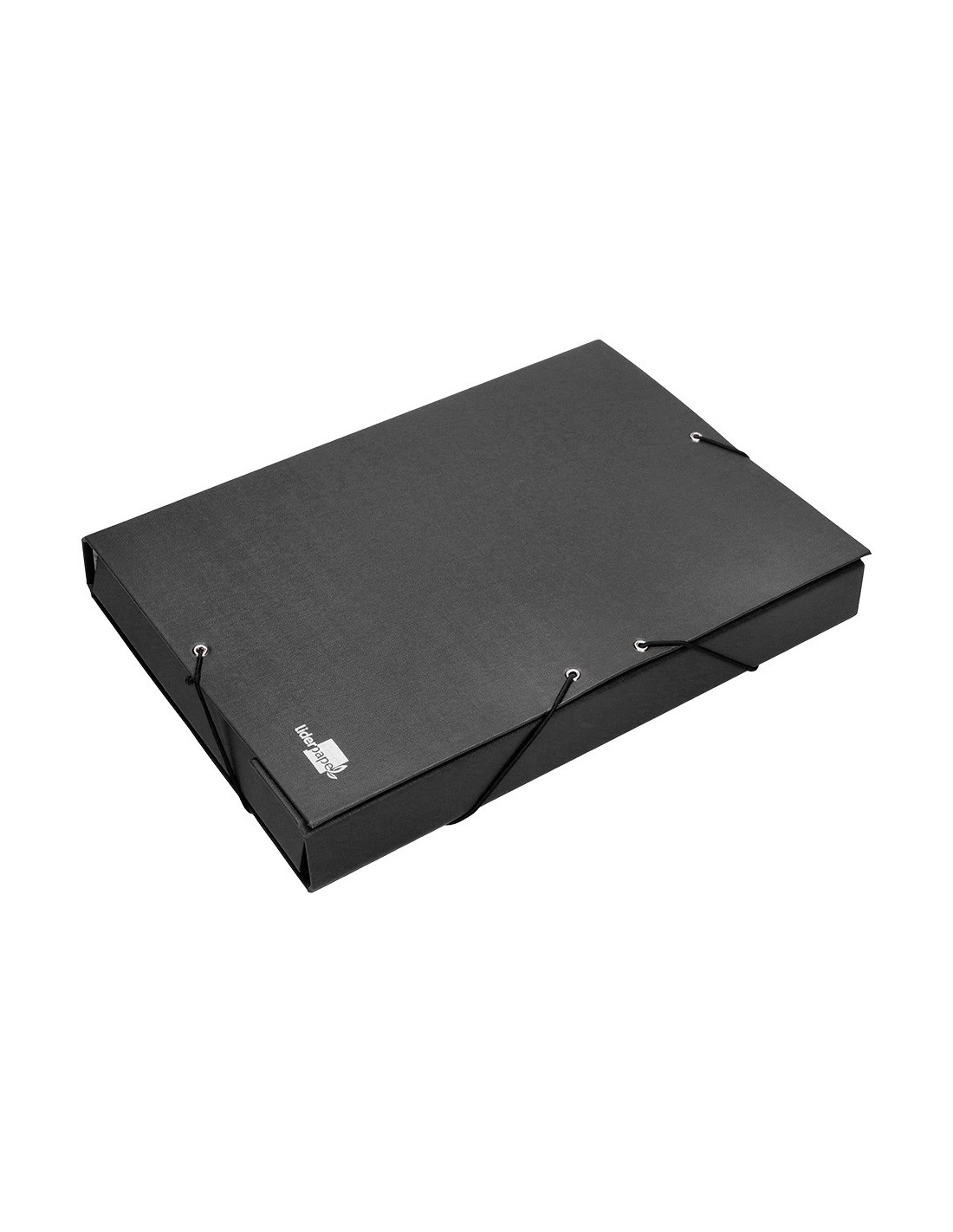 Carpeta para proyectos fabricada en cartón entrecolado de 1,9 mm de espesor, forrado gofrado tela de PVC y guarda interior. Con etiqueta identificativa para pegar en el lomo. Cierre con elástico. Tamaño folio. Medidas: 250 x 350 mm.