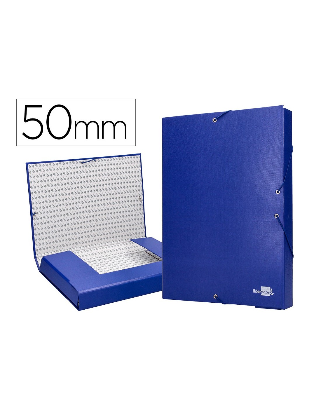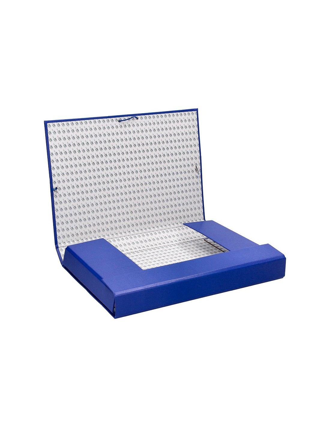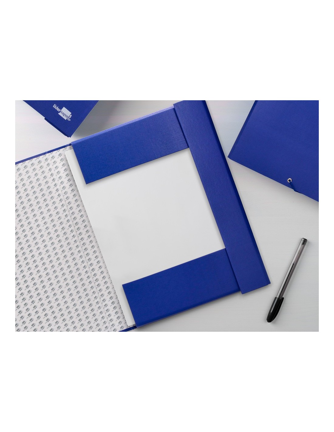 Carpeta para proyectos fabricada en cartón entrecolado de 1,9 mm de espesor, forrado gofrado tela de PVC y guarda interior. Con etiqueta identificativa para pegar en el lomo. Cierre con elástico. Tamaño folio. Medidas: 250 x 350 mm.