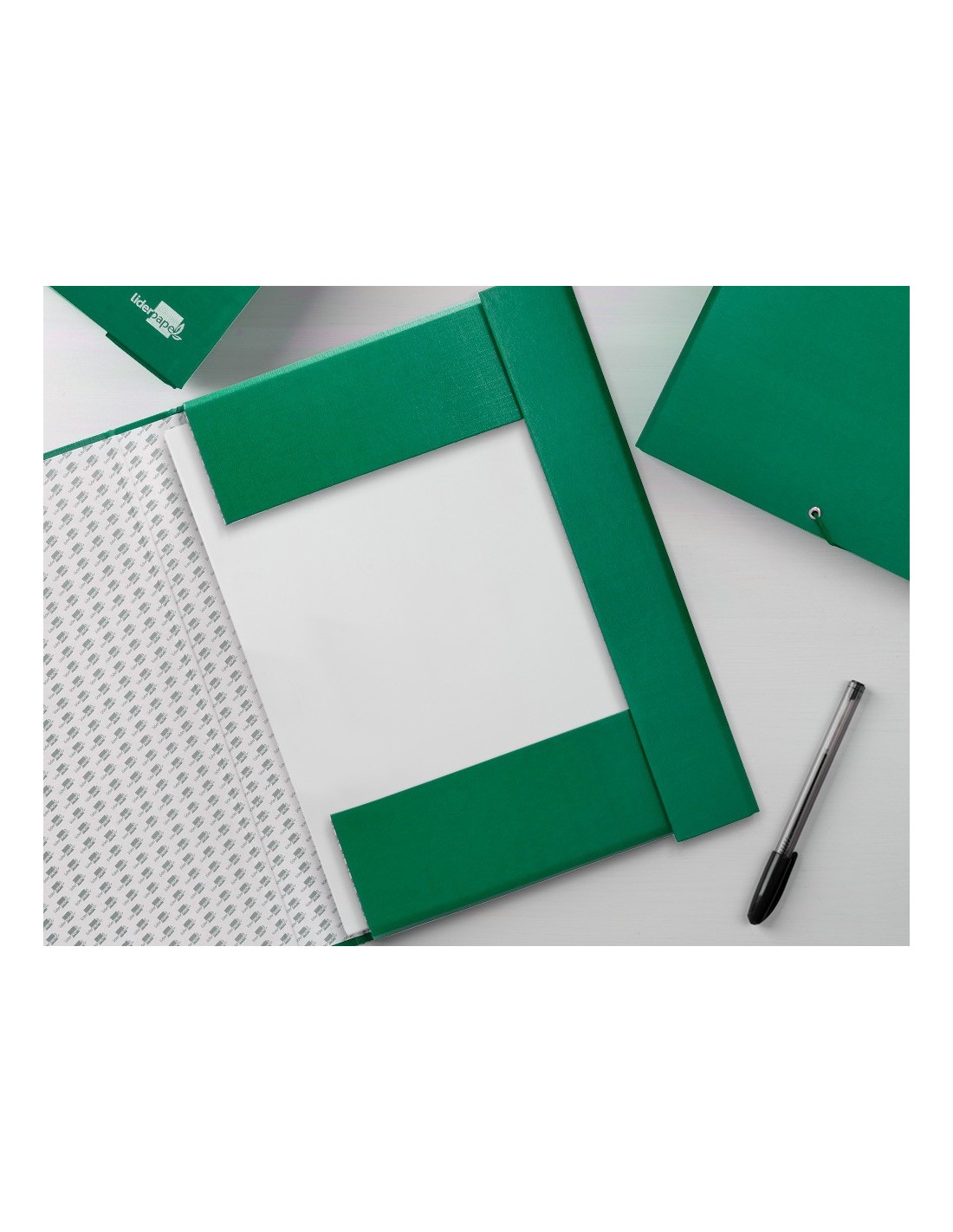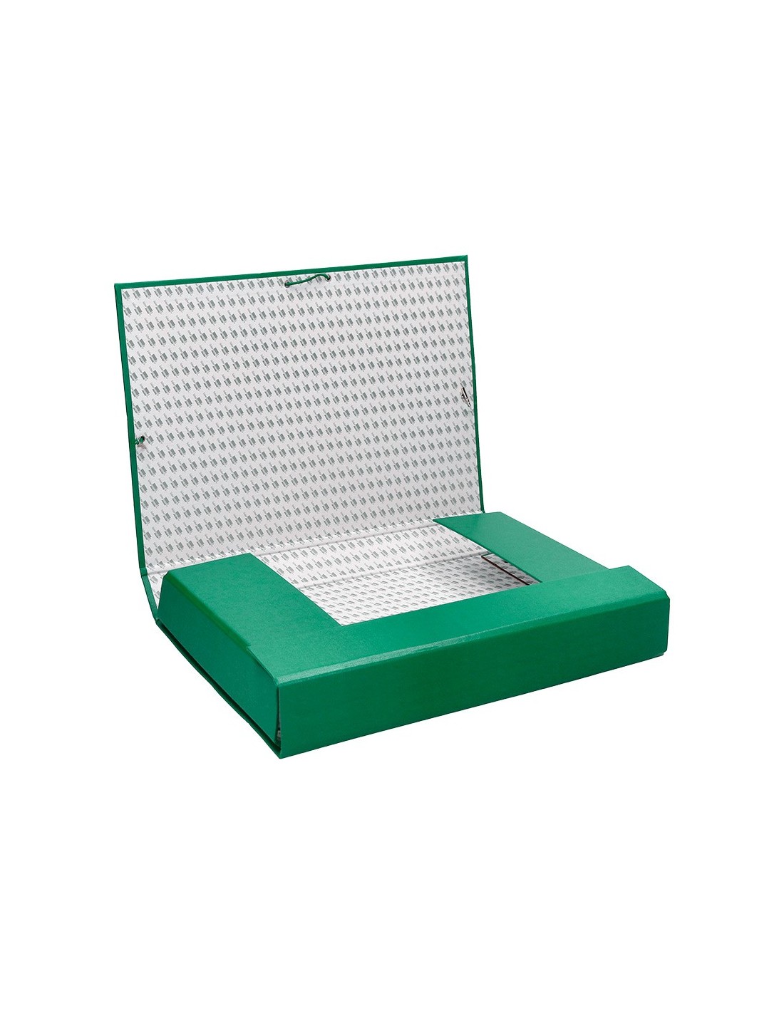 Carpeta para proyectos fabricada en cartón entrecolado de 1,9 mm de espesor, forrado gofrado tela de PVC y guarda interior. Con etiqueta identificativa para pegar en el lomo. Cierre con elástico. Tamaño folio. Medidas: 250 x 350 mm.