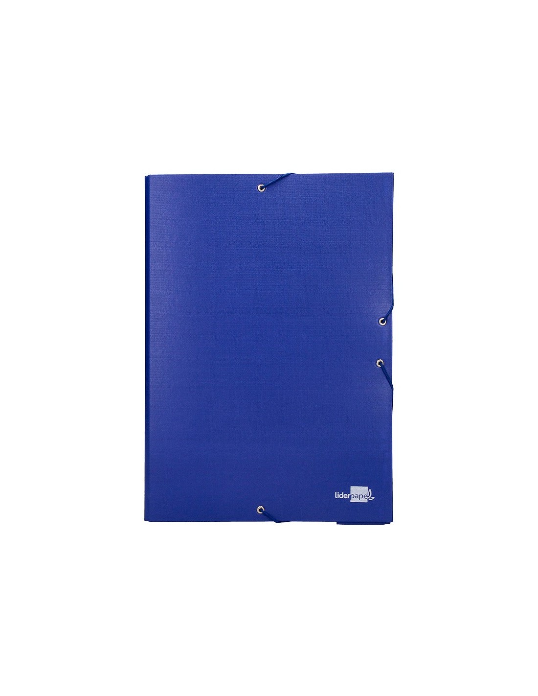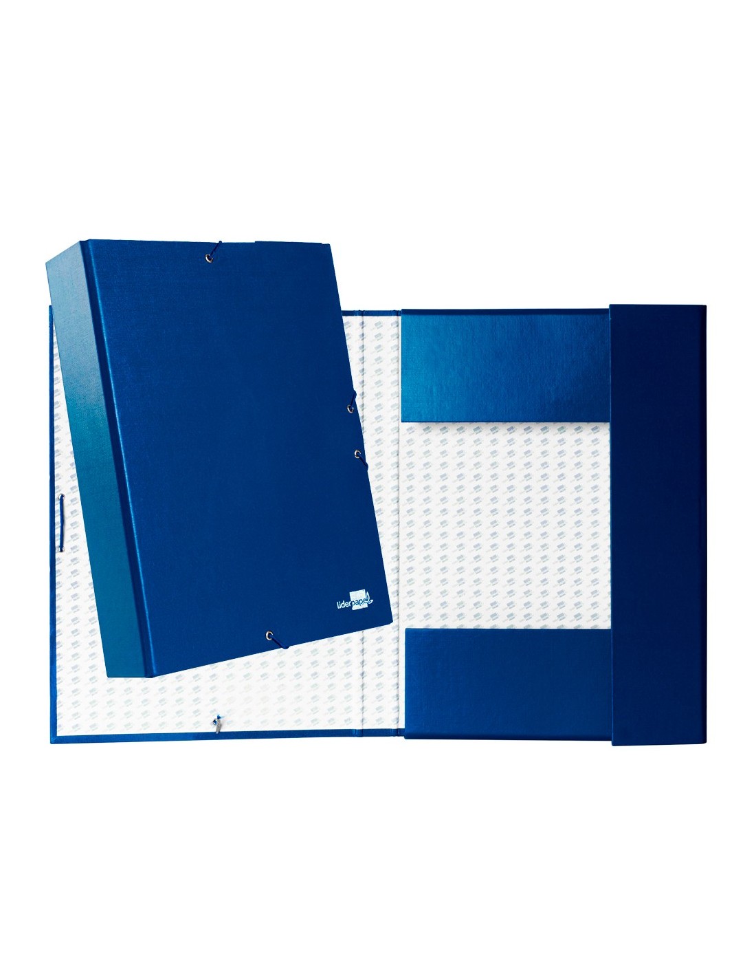 Carpeta para proyectos fabricada en cartón entrecolado de 1,9 mm de espesor, forrado gofrado tela de PVC y guarda interior. Con etiqueta identificativa para pegar en el lomo. Cierre con elástico. Tamaño folio. Medidas: 250 x 350 mm.