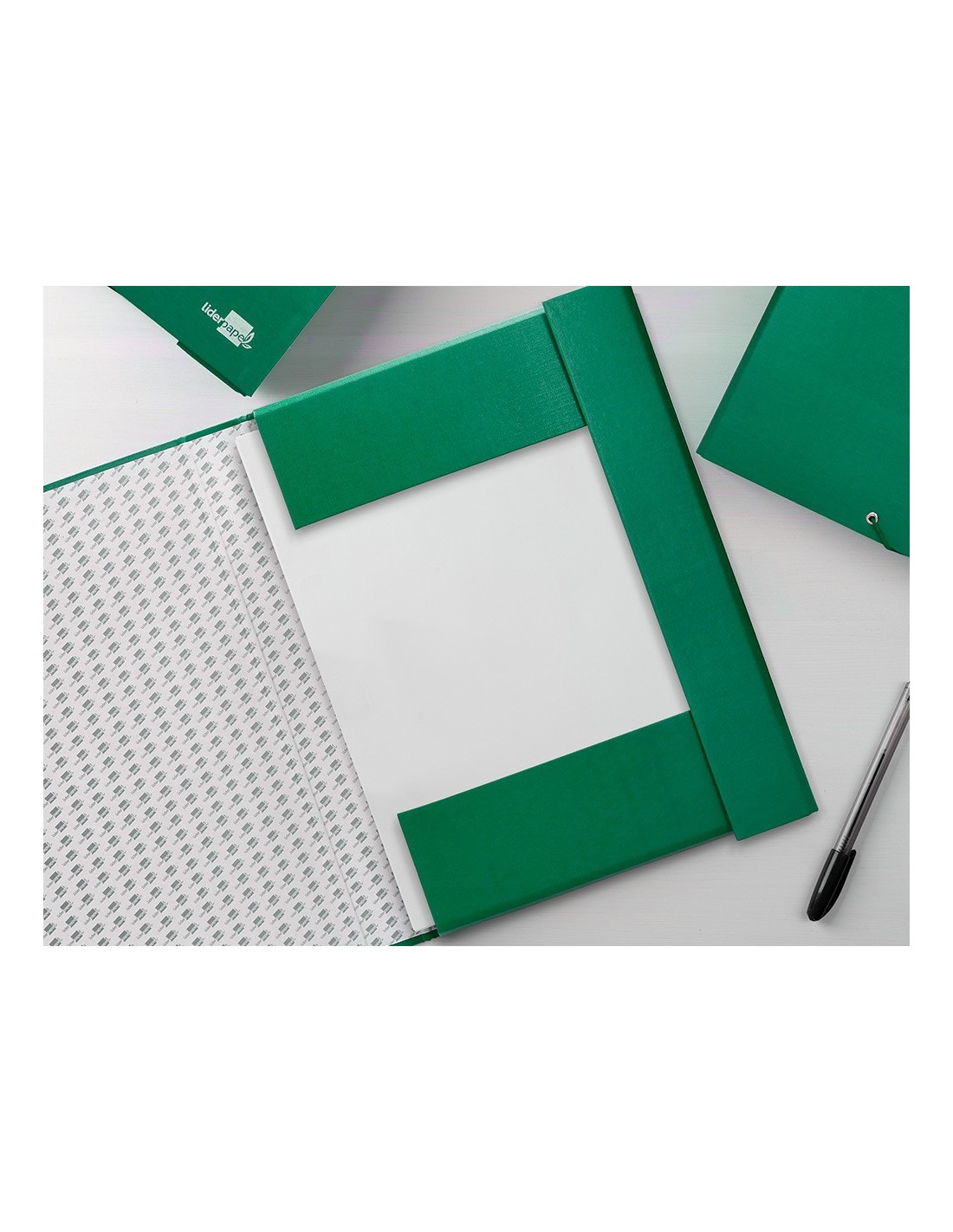 Carpeta para proyectos fabricada en cartón entrecolado de 1,9 mm de espesor, forrado gofrado tela de PVC y guarda interior. Con etiqueta identificativa para pegar en el lomo. Cierre con elástico. Tamaño folio. Medidas: 250 x 350 mm.