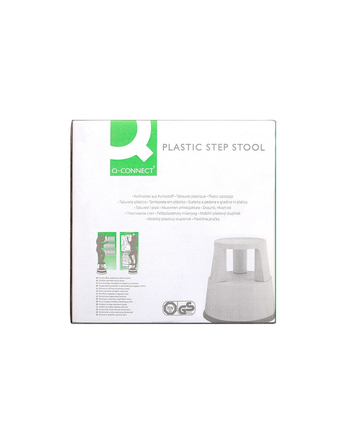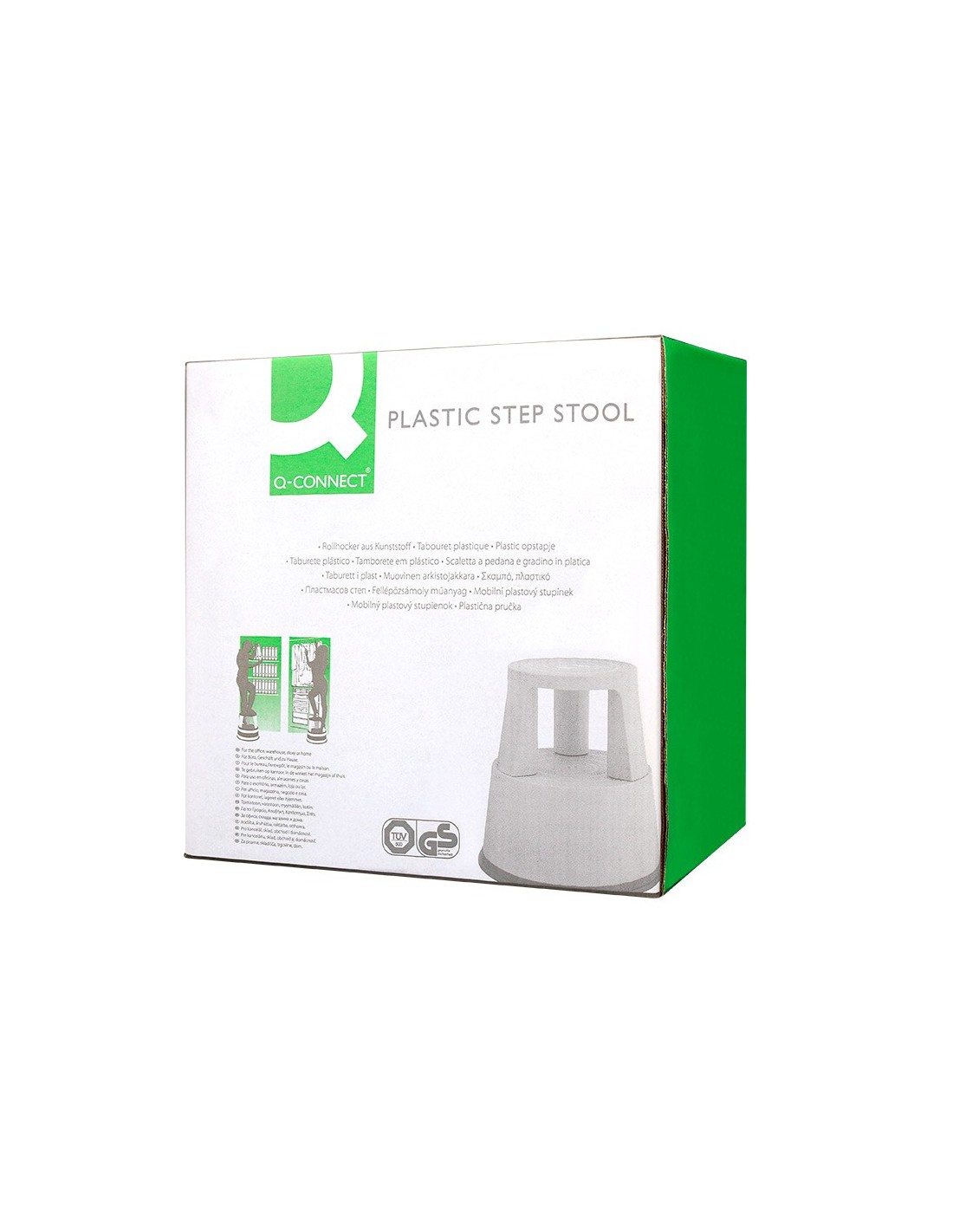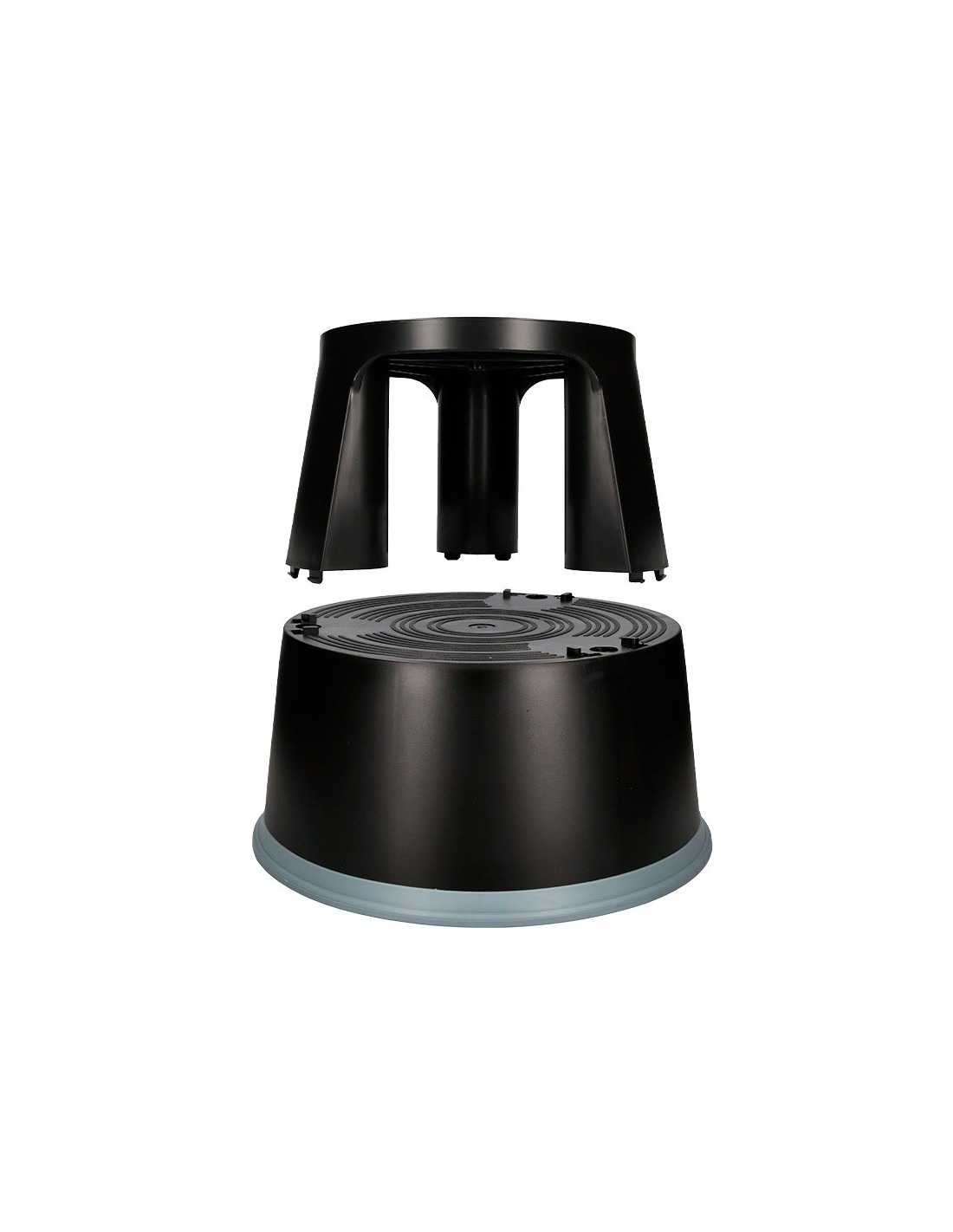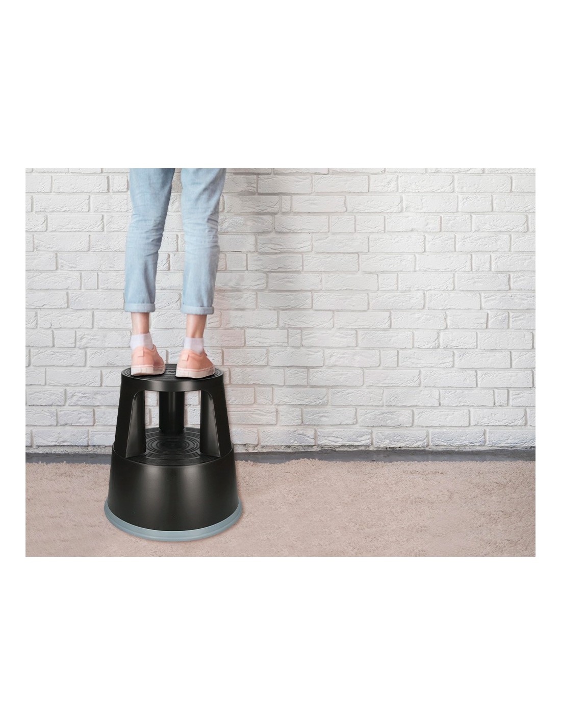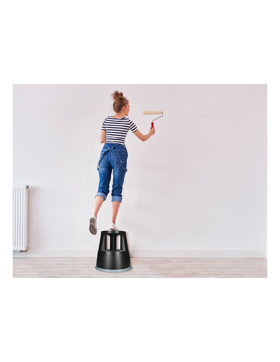 Taburete altamente resistente y firme. Fabricado en ABS. Con ruedas de gomas retráctiles que lo hace muy fácil de transportar y firme a la vez, al permanecer fijo en el suelo. Con dos niveles. Soporta hasta 150 kg. Medidas: Ø 43,5 x 43 x Ø 28 cm.