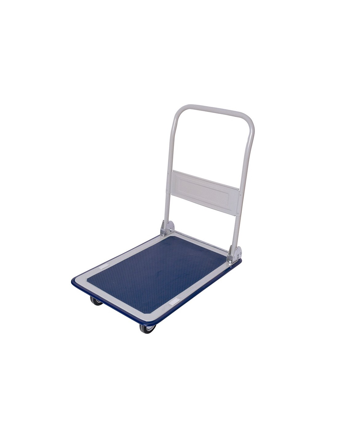 Carro plegable de transporte para paquetería. Con asa abatible y 4 ruedas. Plataforma con revestimiento antideslizante.