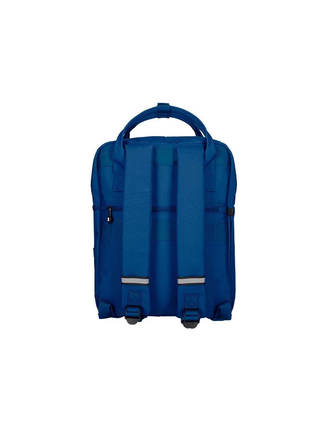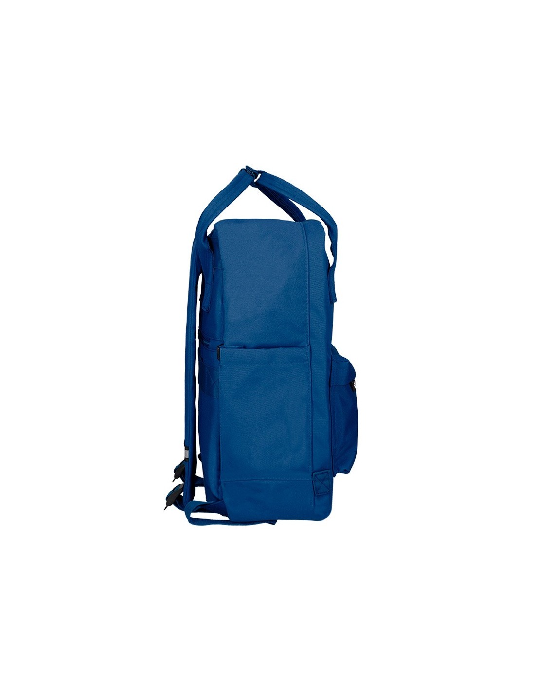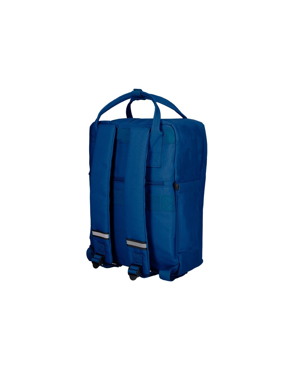 Mochila práctica y resistente, ideal para transportar el material escolar y los efectos personales. Dispone de bolsillo frontal, de bolsillo trasero de seguridad y de bolsillos laterales, uno de ellos con banda elástica. Parte trasera acolchada para mayor confort. Tirantes ajustables acolchados con detalles reflectantes. Bolsillo interior para portátil de 15\". Dispone de asas con broche metálico. Adaptable a carrito portamochilas. Capacidad: 13,5 l. Disponible en varios colores. Medidas: 300 x 390 x 115 mm.