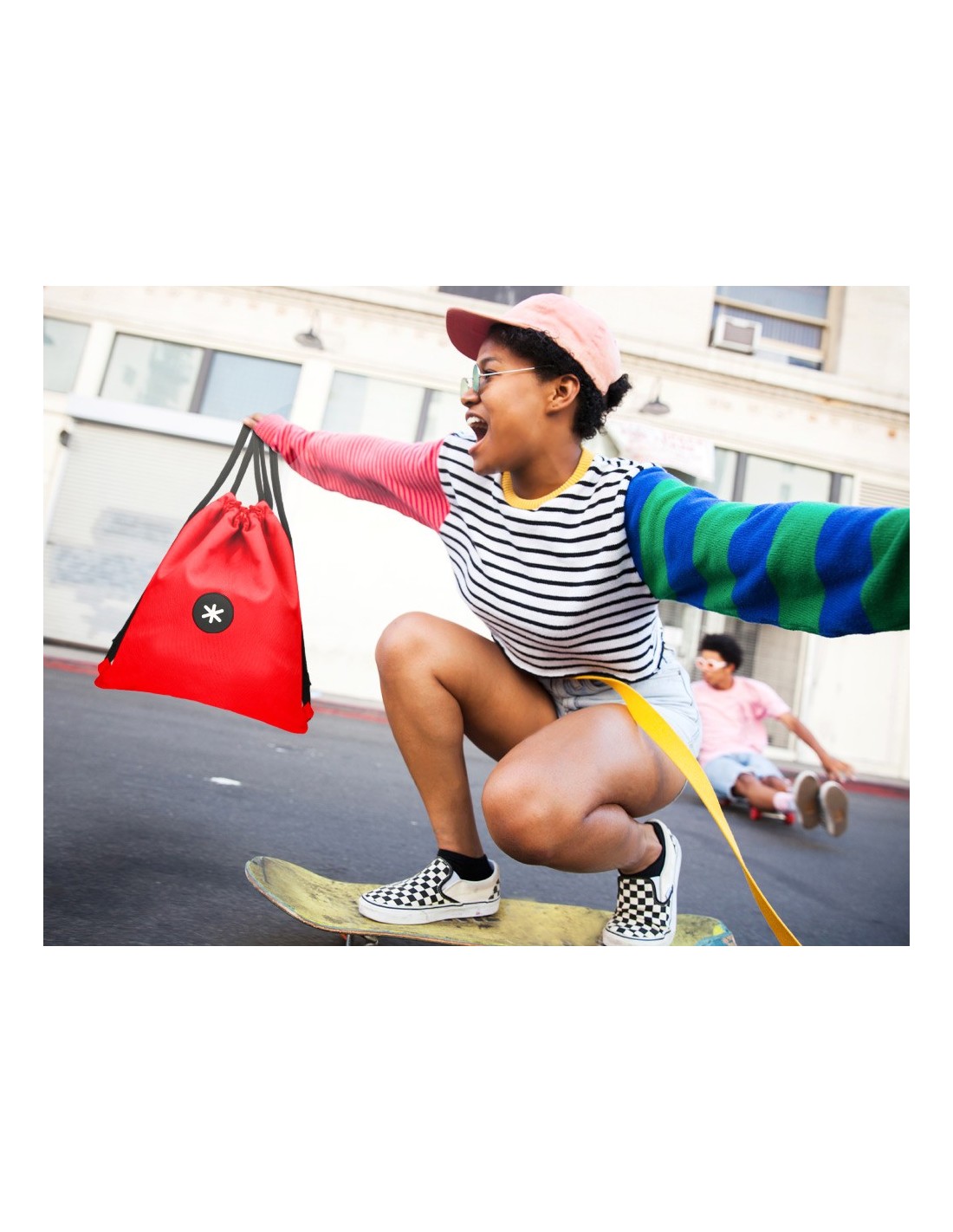 Saco plano ajustable con cierre de cordones. Bolsillo interior con cremallera. Su tamaño ajustable permite llevarla colgada a la espalda como una mochila o al hombro. Ideal para niños o adultos y perfecta para el entrenamiento, ocio o viajes. Medidas: 350 x 400 mm.