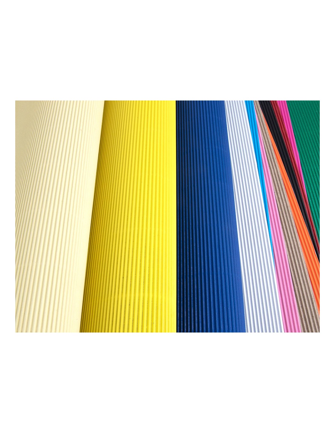 Cartón ondulado de 320 g/m². Gran resistencia y colores intensos. Presentación en bolsa de celofán. Medidas de la hoja: 50 x 70 cm.