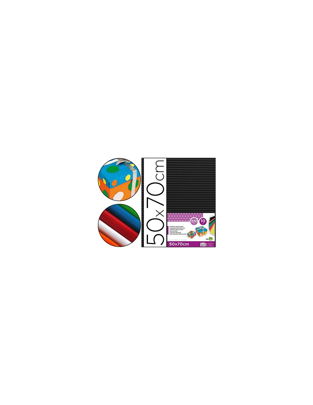 Cartón ondulado de 320 g/m². Gran resistencia y colores intensos. Presentación en bolsa de celofán. Medidas de la hoja: 50 x 70 cm.