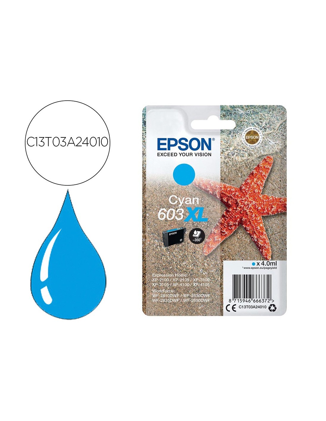 C13T03A24010 CARTUCHO EPSON XP-2100 603XL CIAN 350 PG.