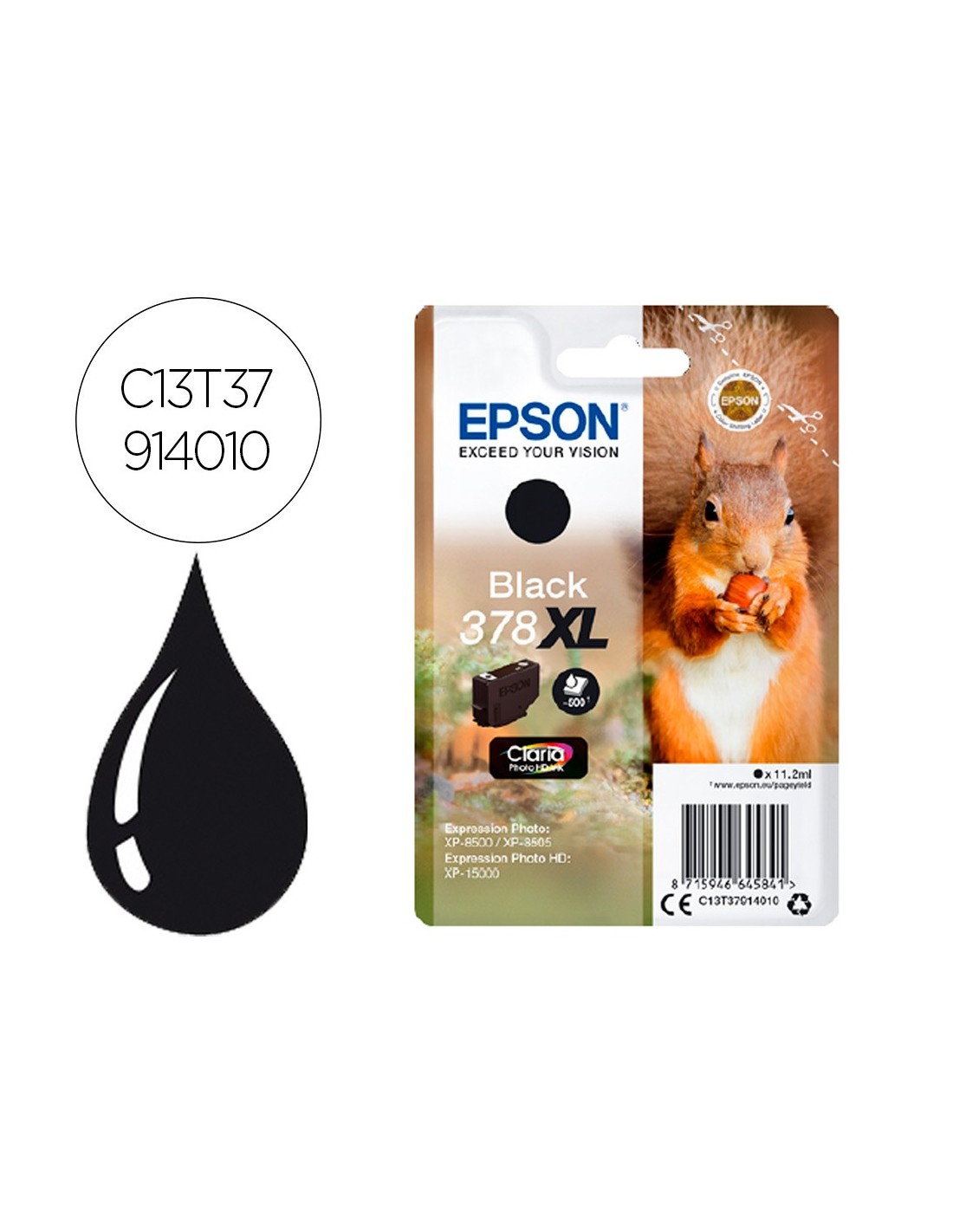 INK-JET EPSON 378 XL EXPRESSION HOME XP-8605 / 8606 / XP-15000 /XP-8500 / 8505 NEGRO 500 PAG