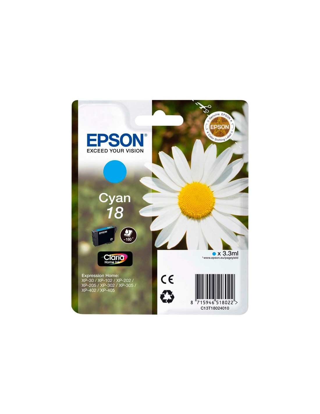 C13T18024012 INK-JET EPSON T18 CYAN EXPRESSION HOME XP-102 XP-20 XP-305 XP-405 CAPACIDAD 180 PAG
