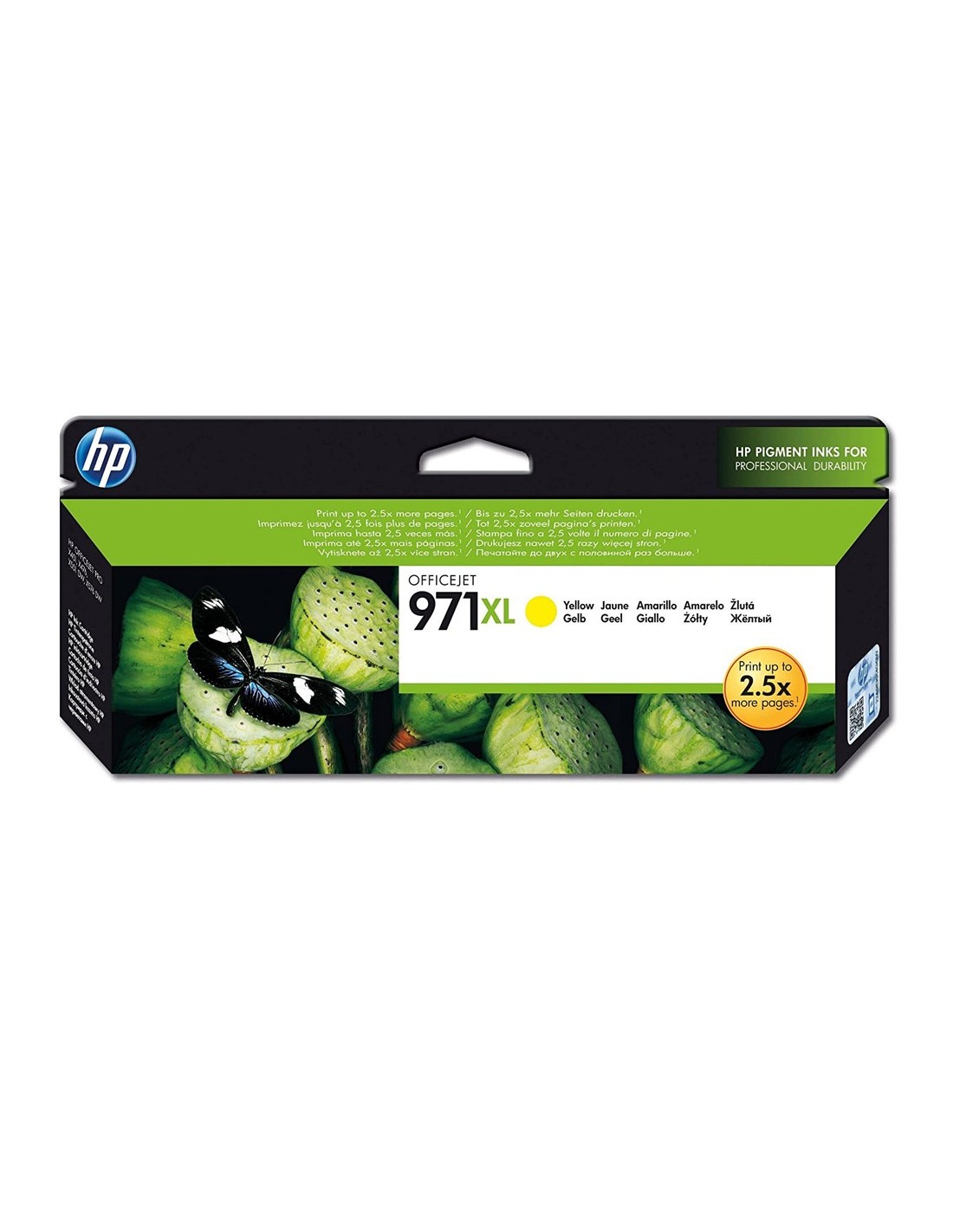 Ideal para impresión consistente y asequible de documentos en color de calidad profesional duraderos de cartuchos que son fáciles de instalar y con reciclaje gratuito. El cartucho de tinta amarilla HP 971XL Officejet produce documentos en color de calidad profesional con gran rentabilidad, a la vez que permite ahorrar tiempo a los grupos de trabajo creando impresiones consistentes y duraderas.