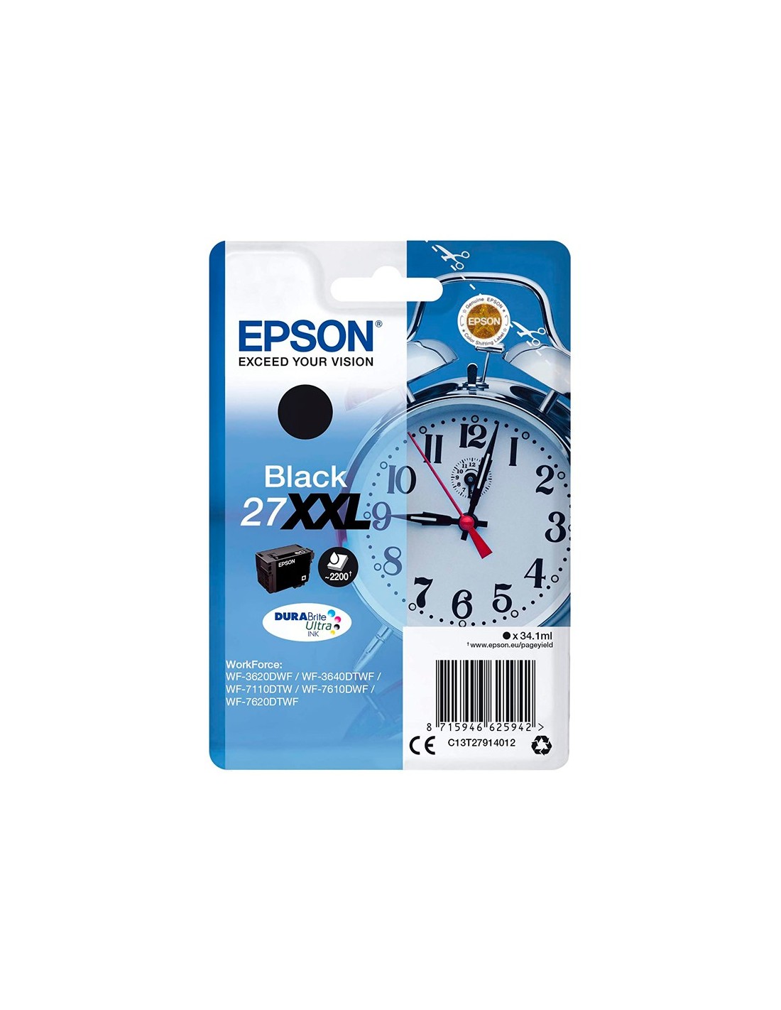 C13T27914012 INK-JET EPSON 27XXL WF3620 / 3640 / 7110 / 7610 / 720 NEGRO 2.200 PAG