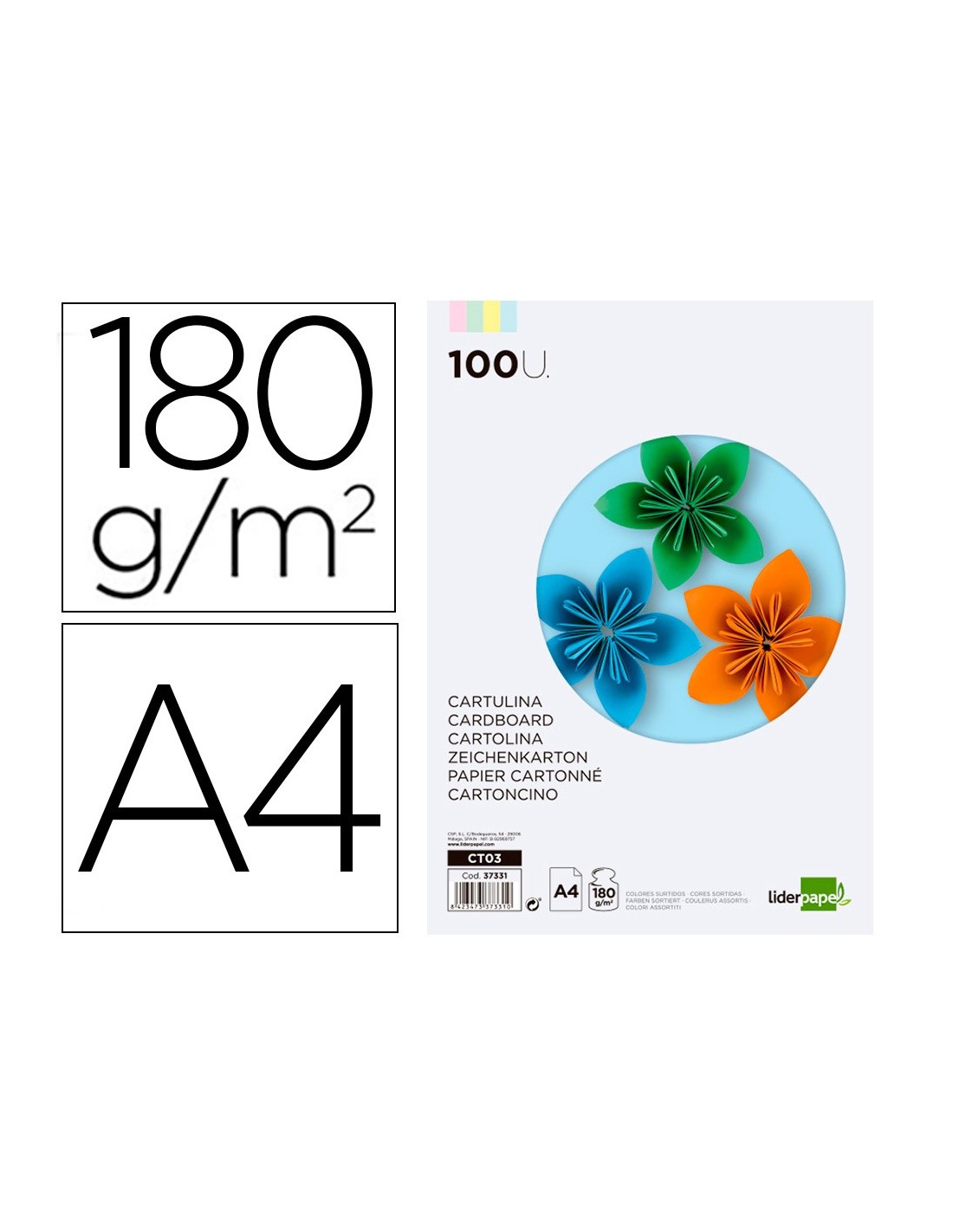 CARTULINA DIN A4 180 GR PAQUETE 100 CUATRO COL.SURT. CELESTE-AMARILLO