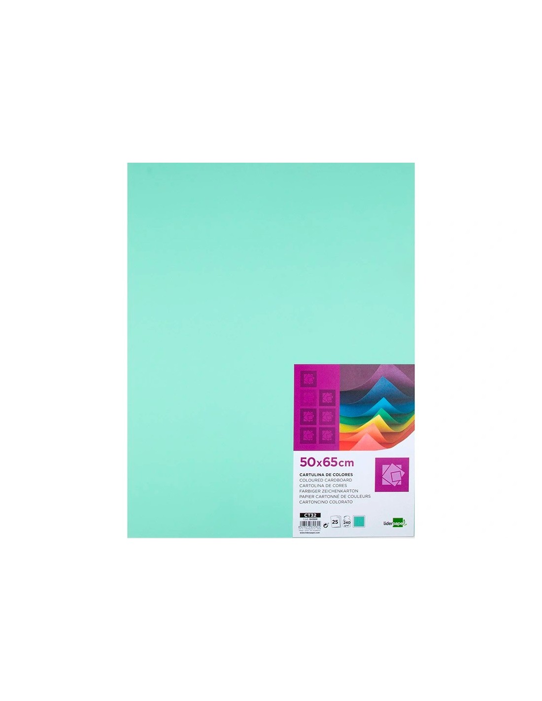 CARTULINA LIDERPAPEL 50X65 CM 240G/M2 VE.HIERBA PAQUETE 25 UNIDADES