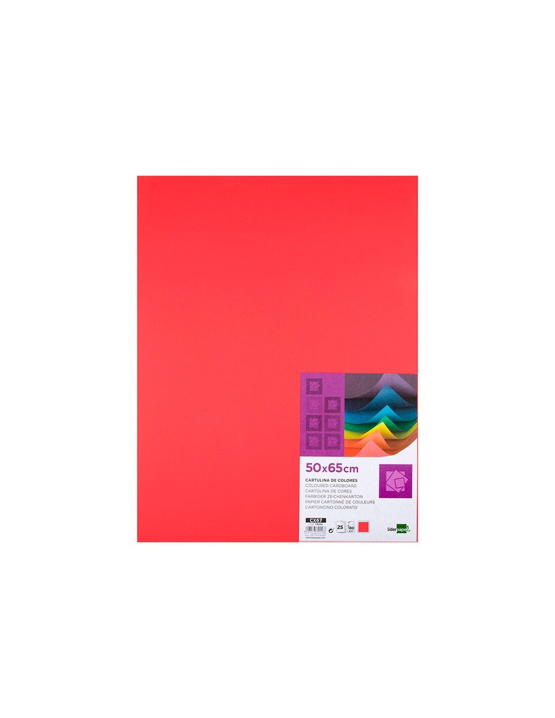 CARTULINA LIDERPAPEL 50X65 CM 180G/M2 ROJO PAQUETE DE 25