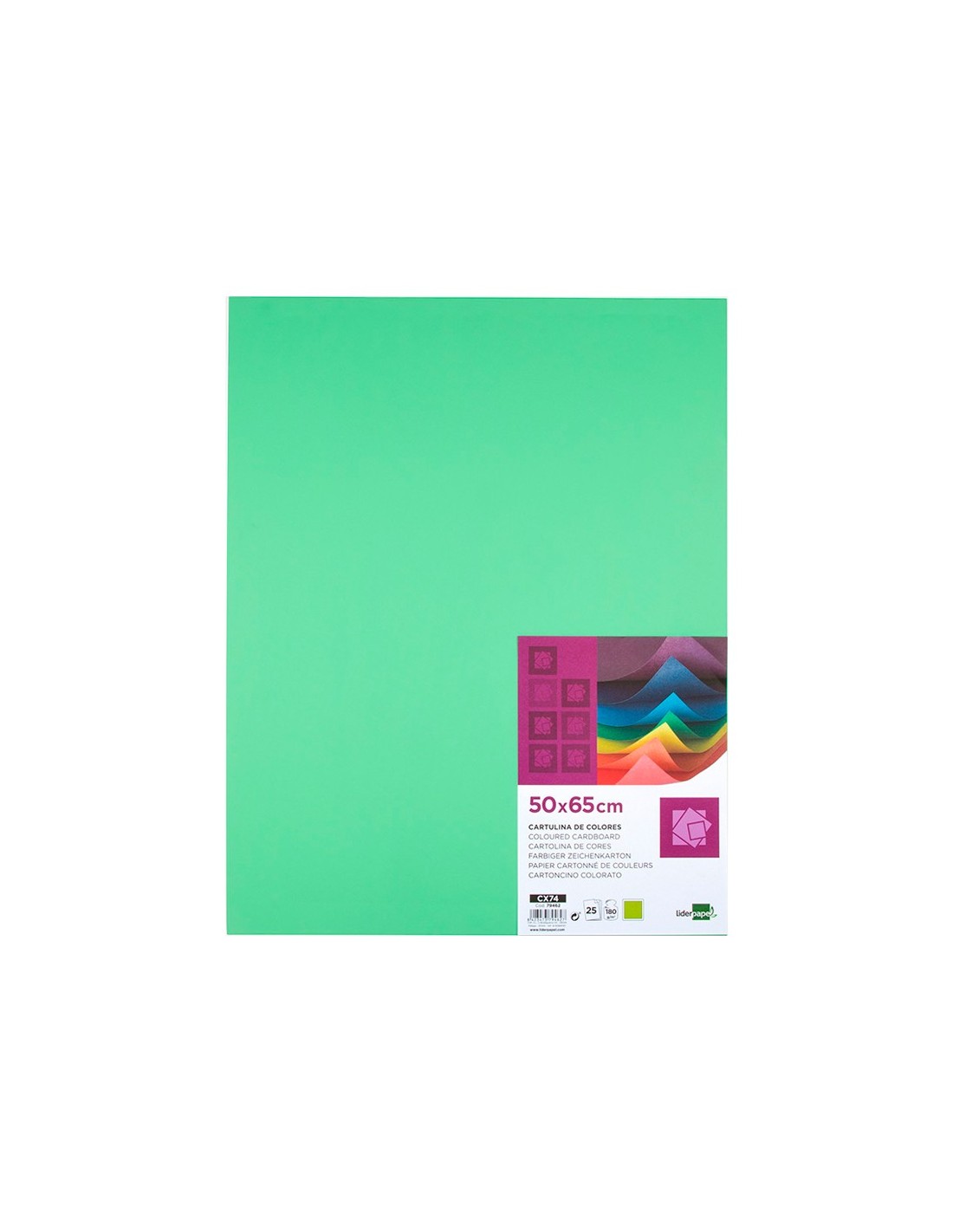 CARTULINA LIDERPAPEL 50X65 CM 180G/M2 VERDE PISTACHO PAQUETE DE 25