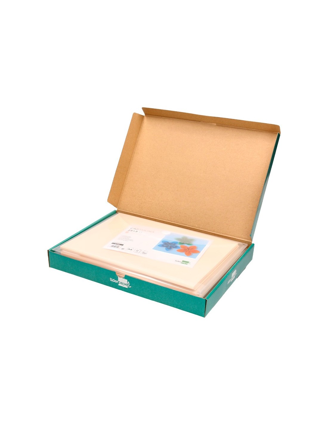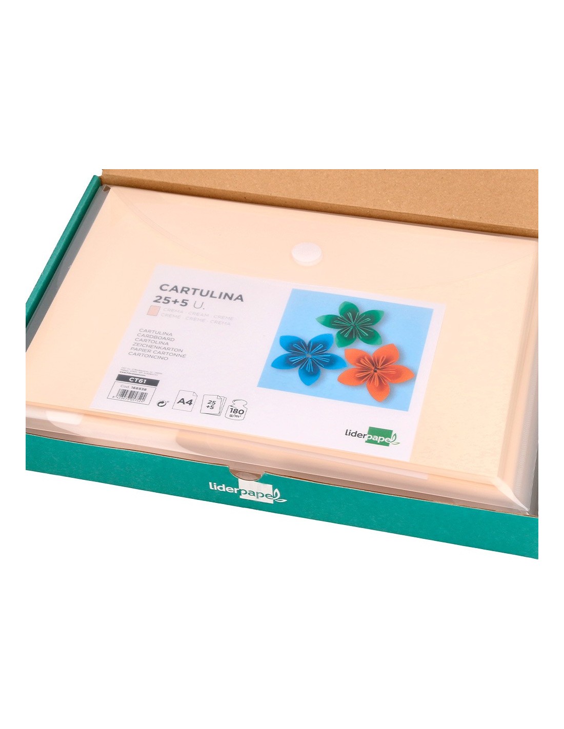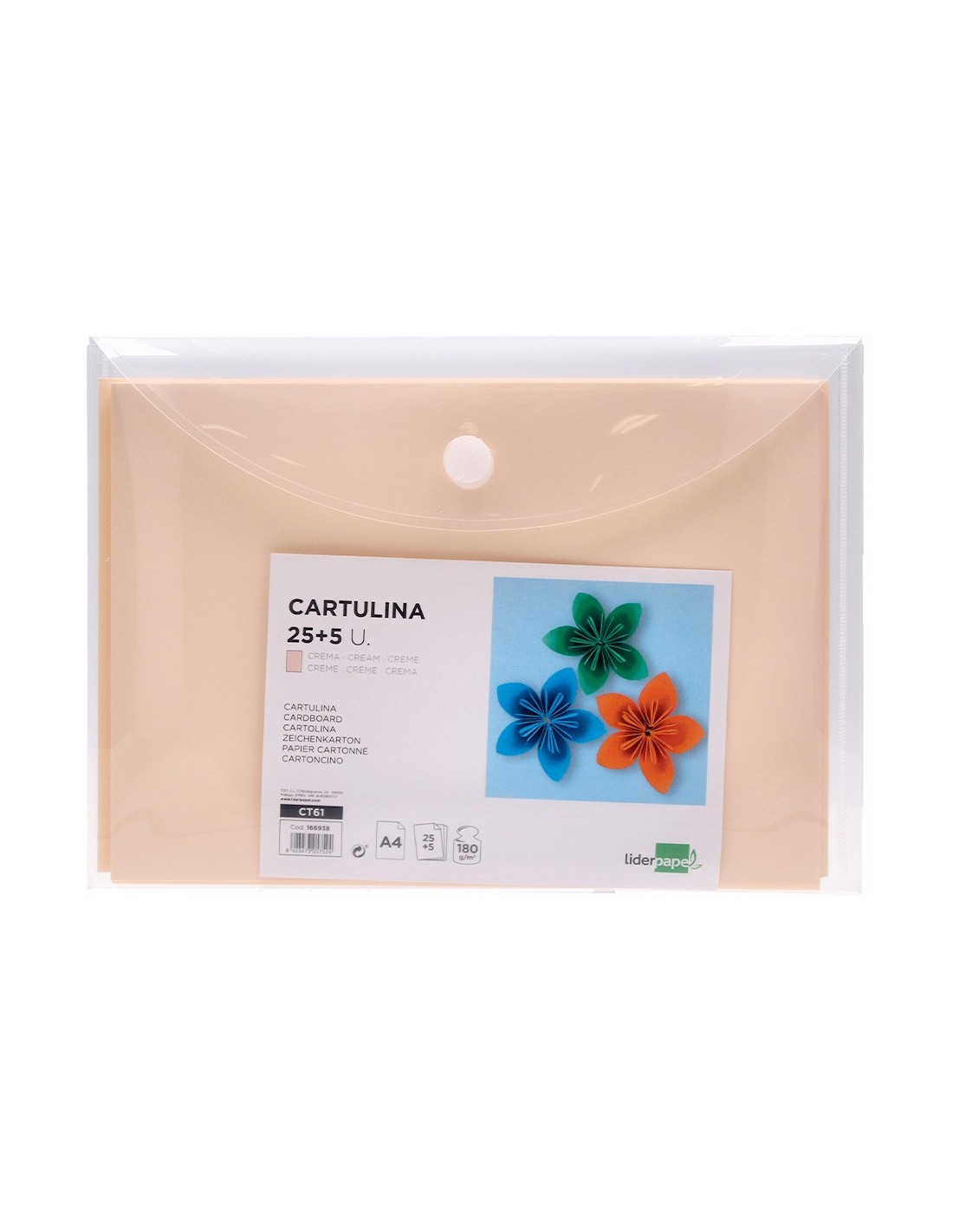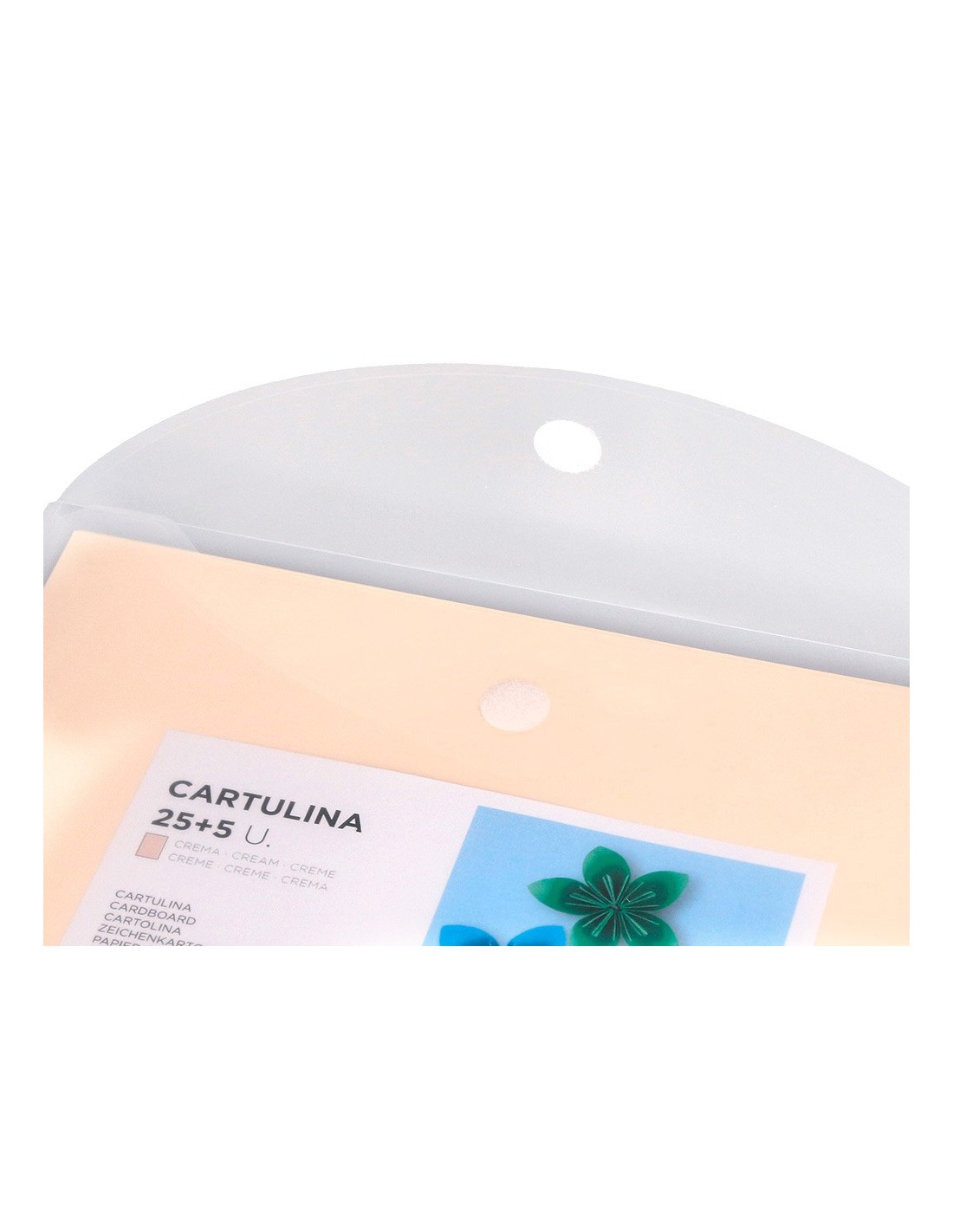 Apta para la utilización escolar, ideal para todo tipo de manualidades y uso de cartelería. Se pega fácilmente con los pegamentos escolares. Color Crema. PAQUETE DE 25+5 HOJAS EN CARPETA DOSSIER TRANSPARENTE CON CIERRE DE DE VELCRO