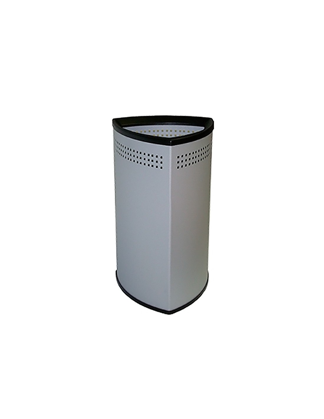 Paragüero metálico triangular. Fabricado en acero inoxidable. Para paraguas largos. Color gris. Medidas: Ø 30 x 50 cm.