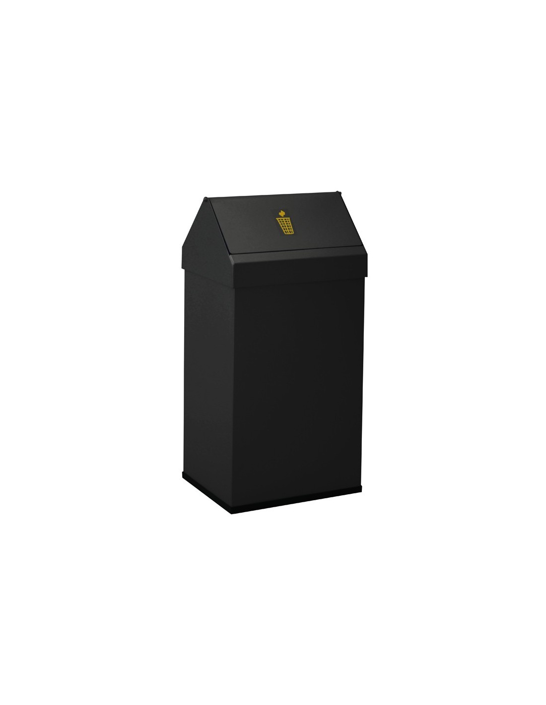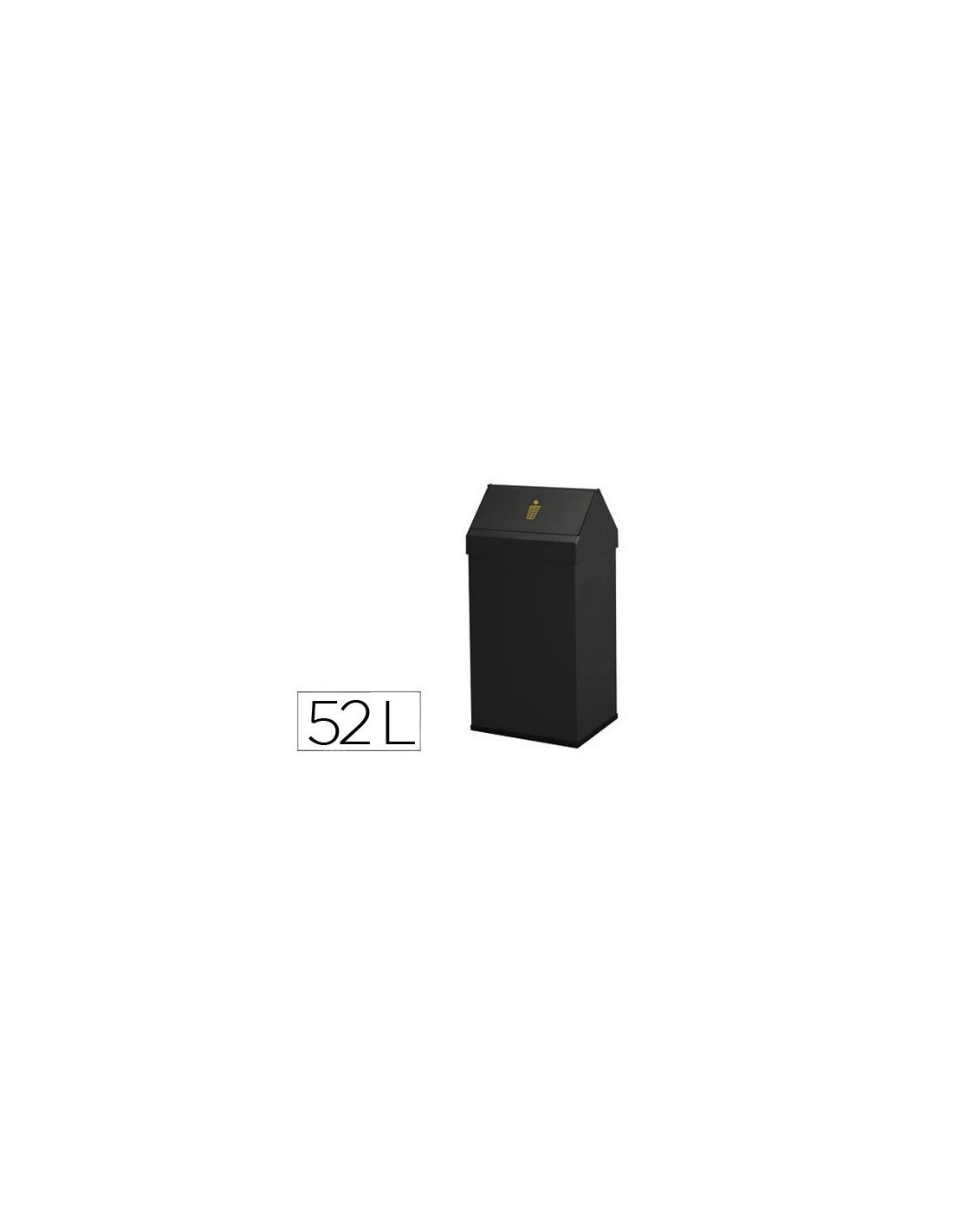 Papelera metálica basculante. Parte inferior de PVC. Ganchos interiores para bolsa. Base de PVC. Color negro. Capacidad: 41 litros. Medidas: 32 x 65 x 25 cm.
