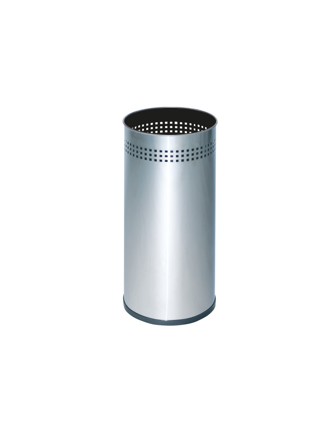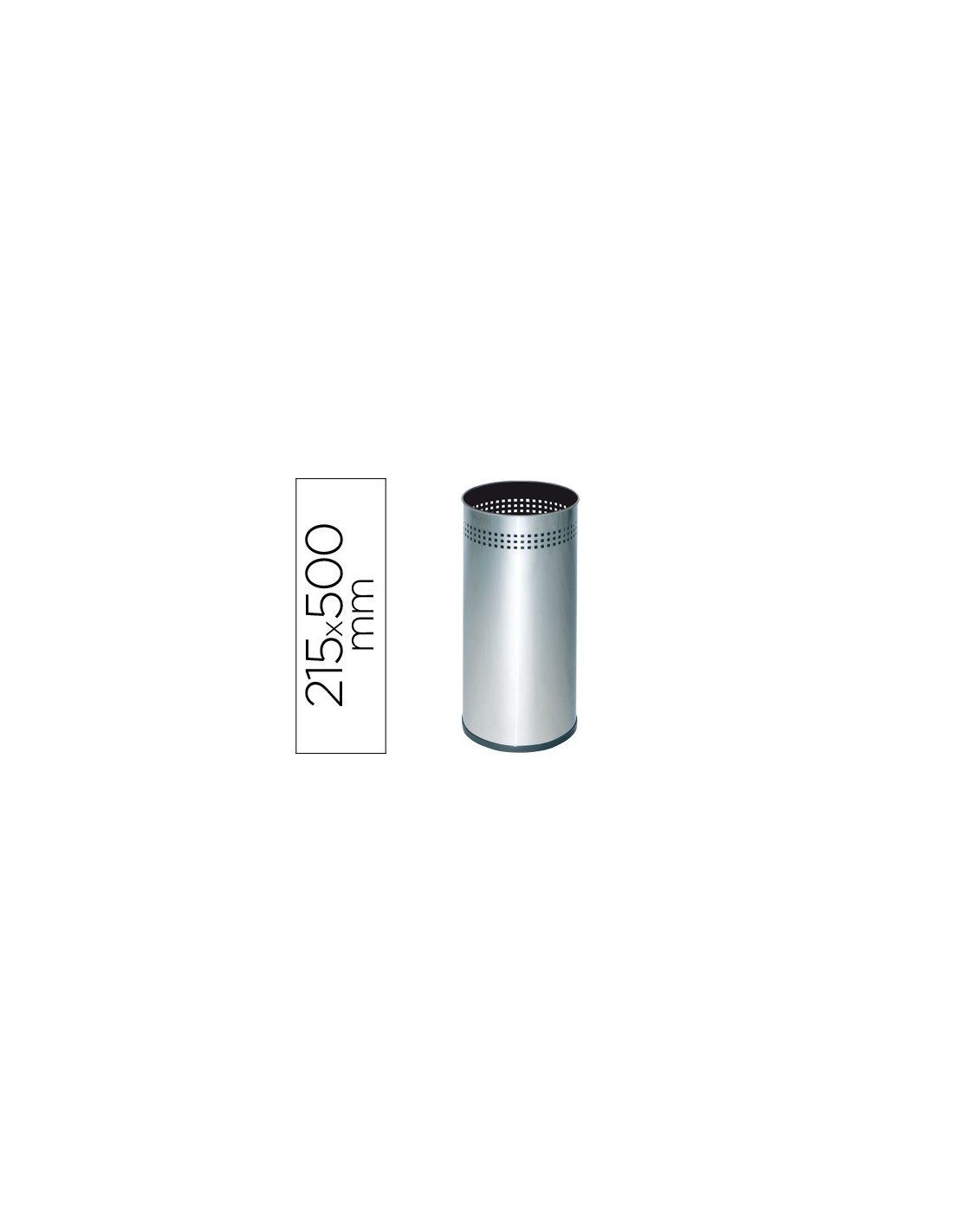 Paragüero metálico de acero inoxidable perforado. Color plateado. Aro inferior fabricado en PVC. Medidas: Ø 21,5 x 50 cm.