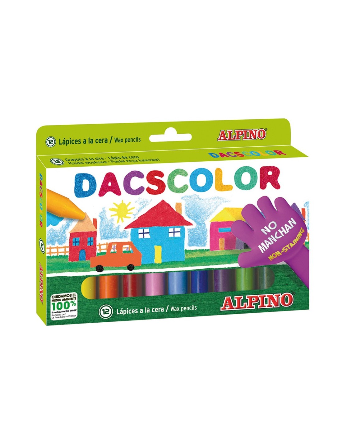Lápices de cera suaves y deslizantes. Colores intensos. Barritas resistentes (ceras semiblandas). No manchan. Se pueden mezclar. Altura de la cera: 80 mm. Diámetro de la cera: 12 mm.
