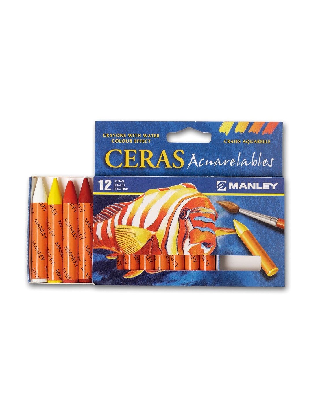 Ceras acuarelables de alta calidad en caja de cartón. Pueden usarse en seco o solubles al agua, ya que permite ambas combinaciones.