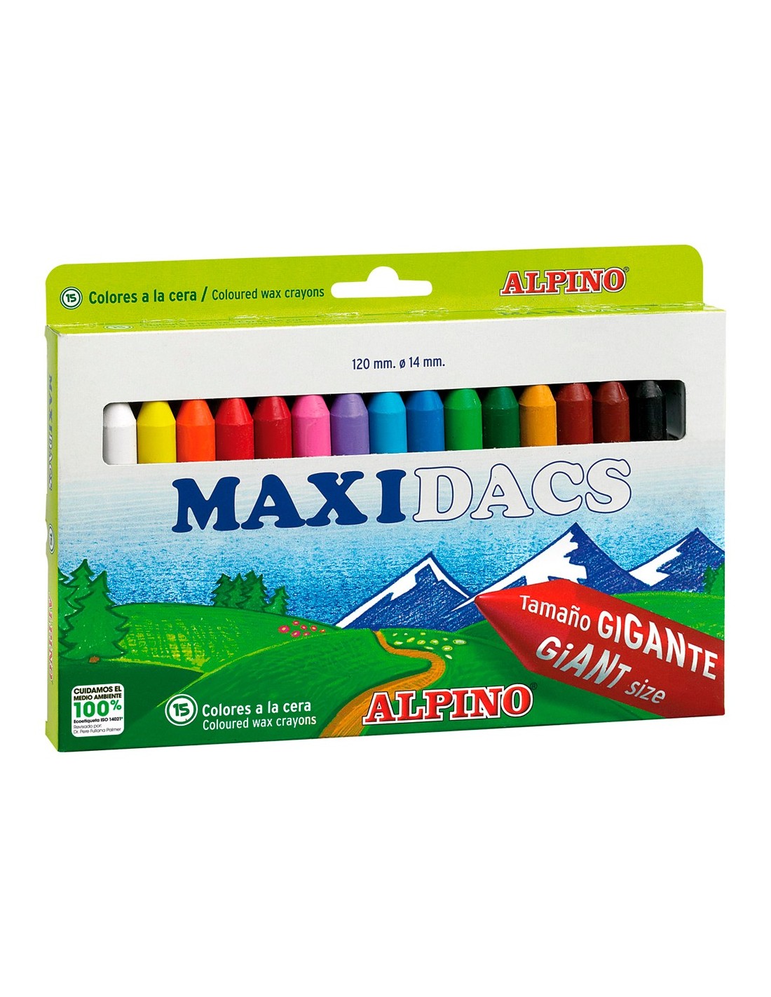 Ceras de tamaño gigante indicadas para los más pequeños. Colores vivos y cubrientes, son ideales para pintar en casa o en el colegio. De gran duración gracias a su tamaño. Con etiqueta alrededor para que los niños no se manchen. Altura de la cera: 120 mm. Diámetro de la cera: 14 mm. La caja de 15 lápices.
