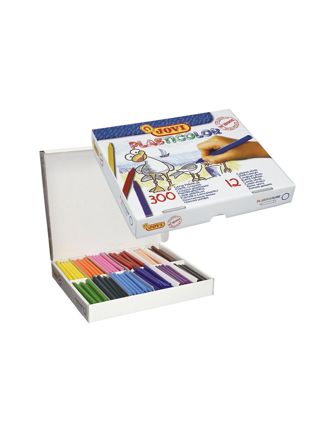 Ceras plásticas resistentes, que no manchan ni se rompen. Permiten un trazo suave y homogéneo. Se deslizan muy bien sobre el papel, cartón, madera, tela, etc. 25 lápices por 12 colores. La caja de 300 lápices.