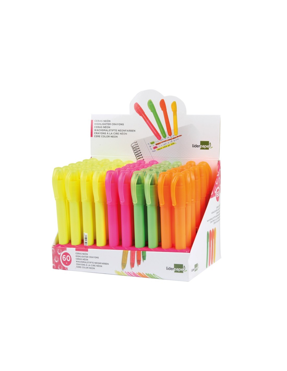 Ceras blandas de gel para marcar y subrayar en seco. Con stick aplicador, por lo que no manchan ni necesitan sacarles punta. Se deslizan suavemente por el papel sin estropearlo. Colores fluorescentes.