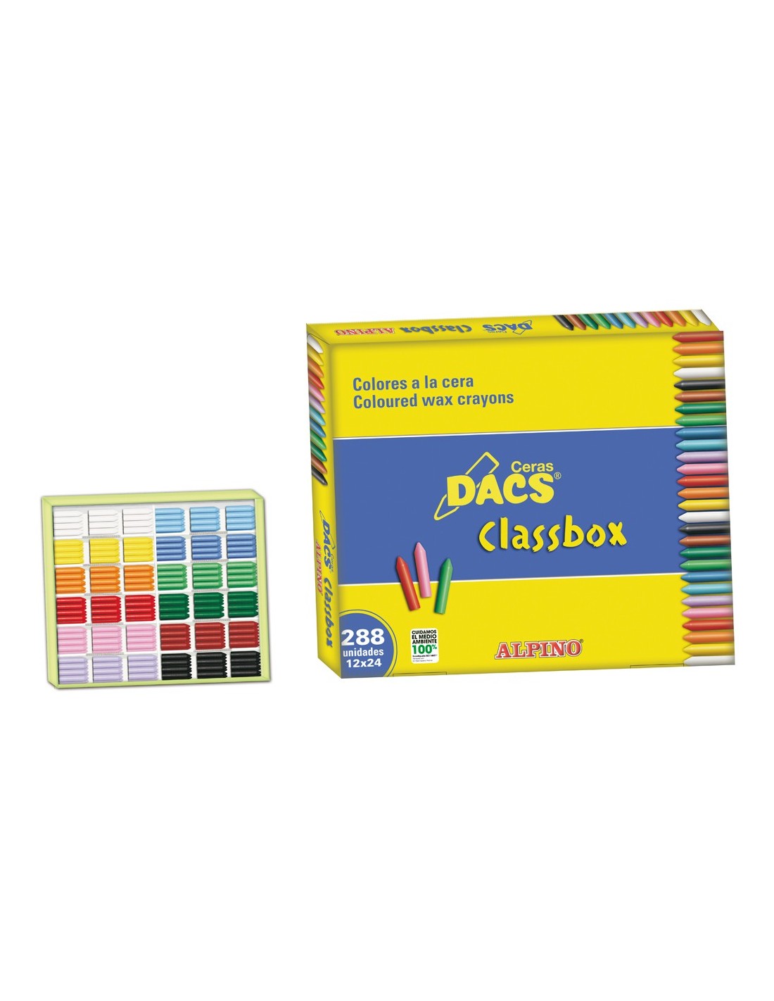 Colores intensos y cubrientes. No dejan partículas. Cremosas y de trazo suave. Los colores se pueden mezclar. Formato escolar, ideal para tenerlos ordenados en clase. Altura de la cera: 53 mm. Diámetro de la cera: 10 mm. 24 lápices por 12 colores surtidos. La caja de 288 lápices.