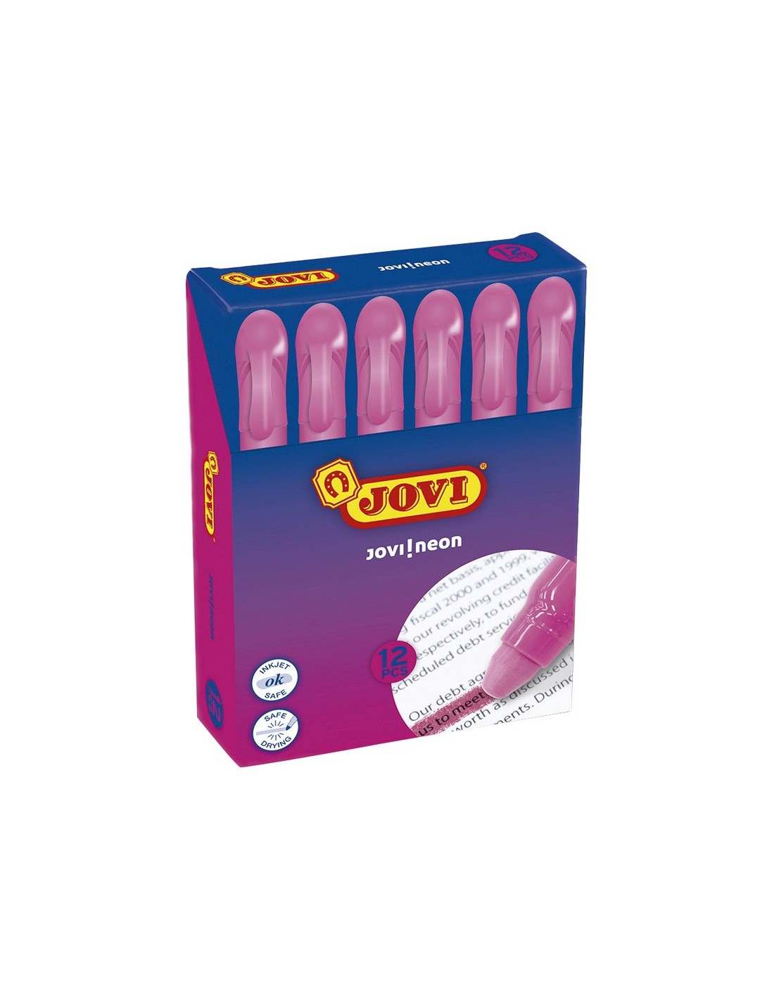 MARCADOR DE CERA GEL JOVI FLUORESCENTE ROSA CAJA DE 12 UNIDADES