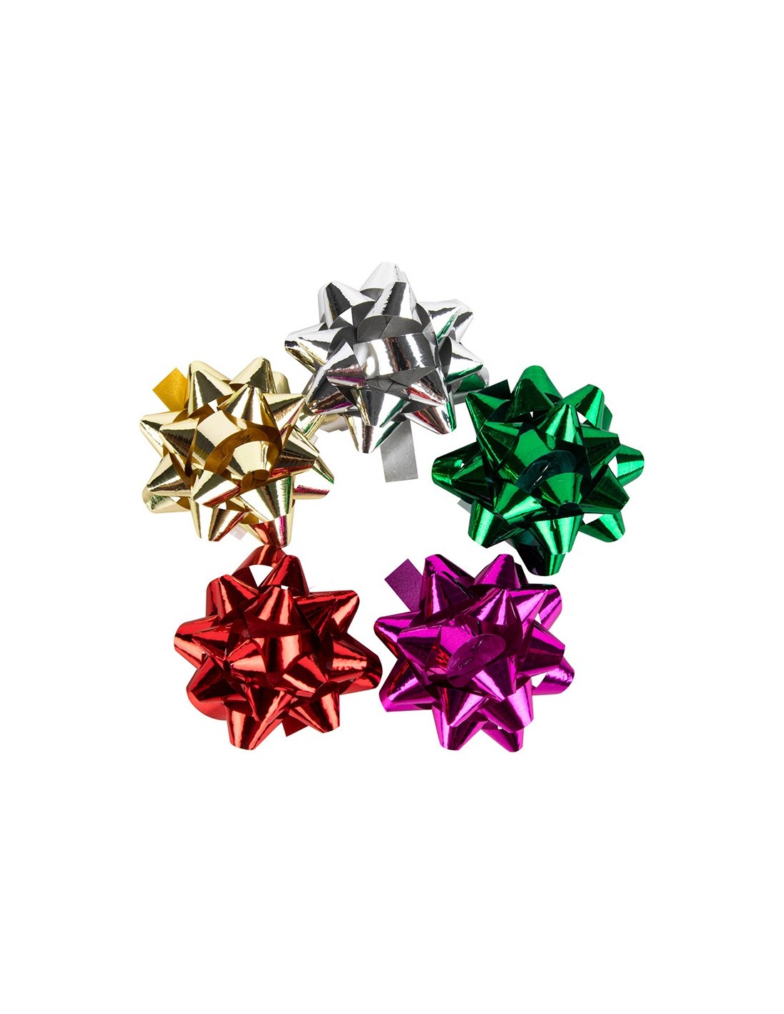 Lazos fantasía en varios colores metalizados. Fáciles de usar. Ideales para pegar directamente sobre los paquetes de regalo. Colores surtidos. Ancho del lazo: 4 cm.