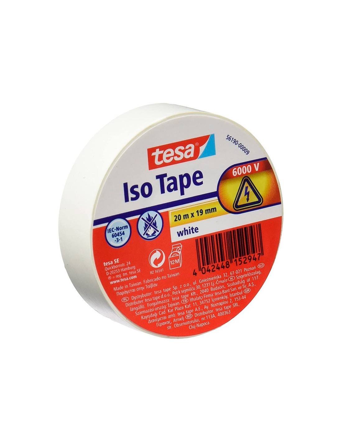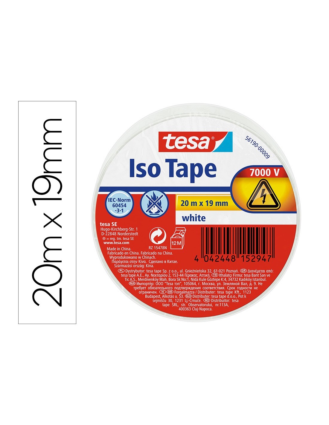 CINTA AISLANTE DE ELECTRICIDAD 19 MM X 20 M. HASTA 6000 VOLTIOS COLOR BLANCO