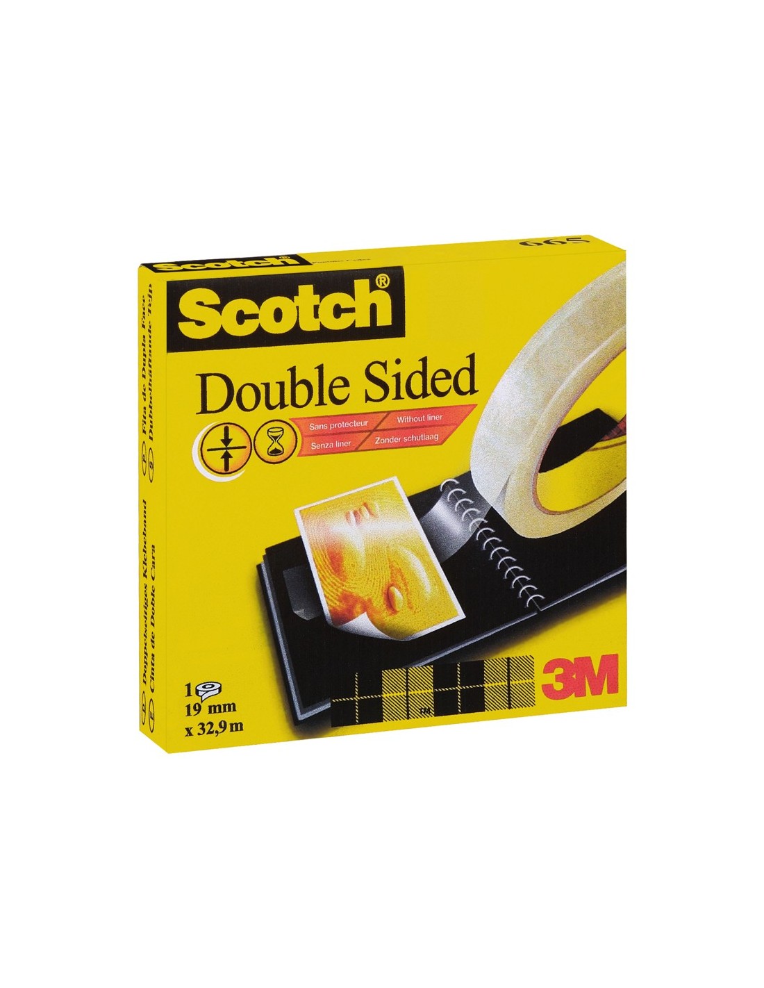 Con adhesivo en ambas caras, es muy útil para pegar o montar objetos en interiores sobre la mayoría de superficies rígidas. Transparente. Medidas: 33 m x 19 mm.