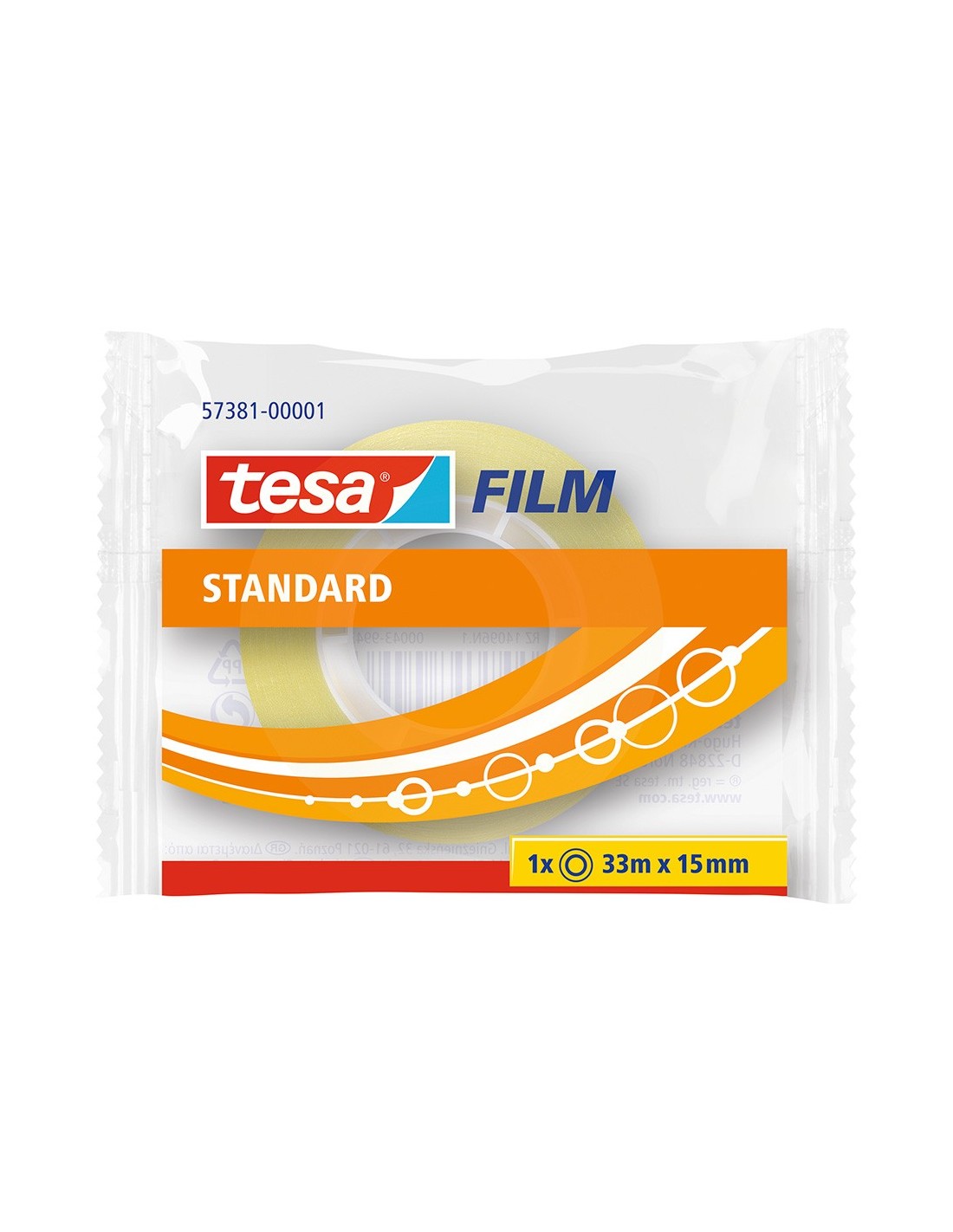 Cinta adhesiva estándar de uso general. Presentada individualmente en bolsas encelofanadas.