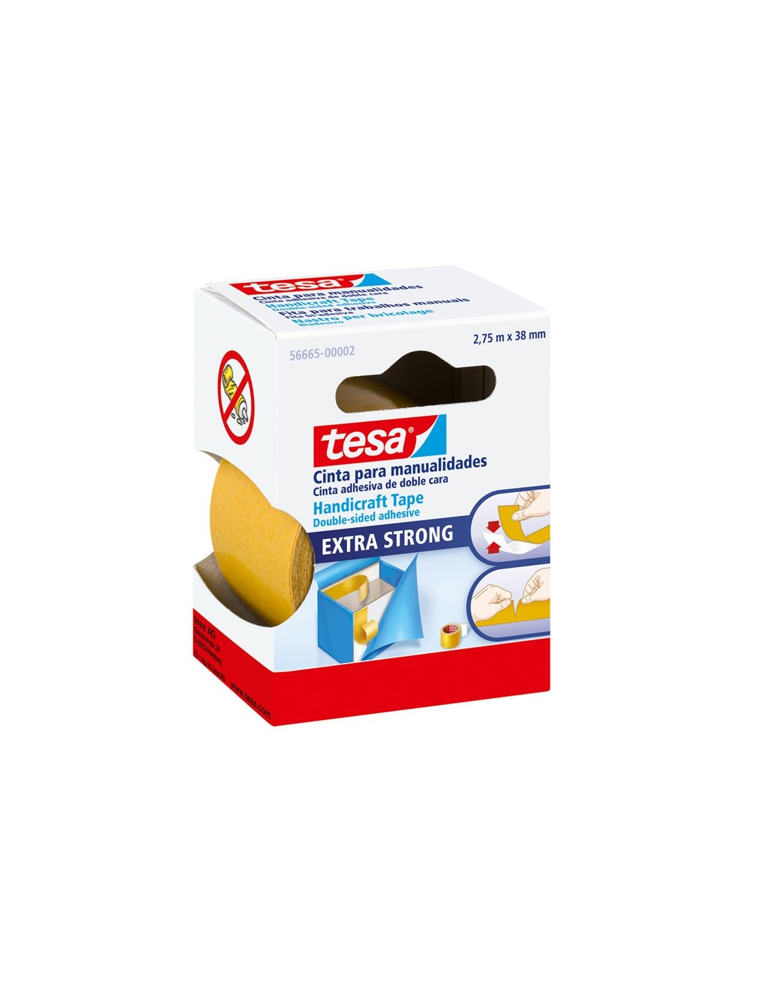 Con adhesivo de doble cara, extrafuerte, especial para manualidades. Medidas: 2,75 m x 38 mm.