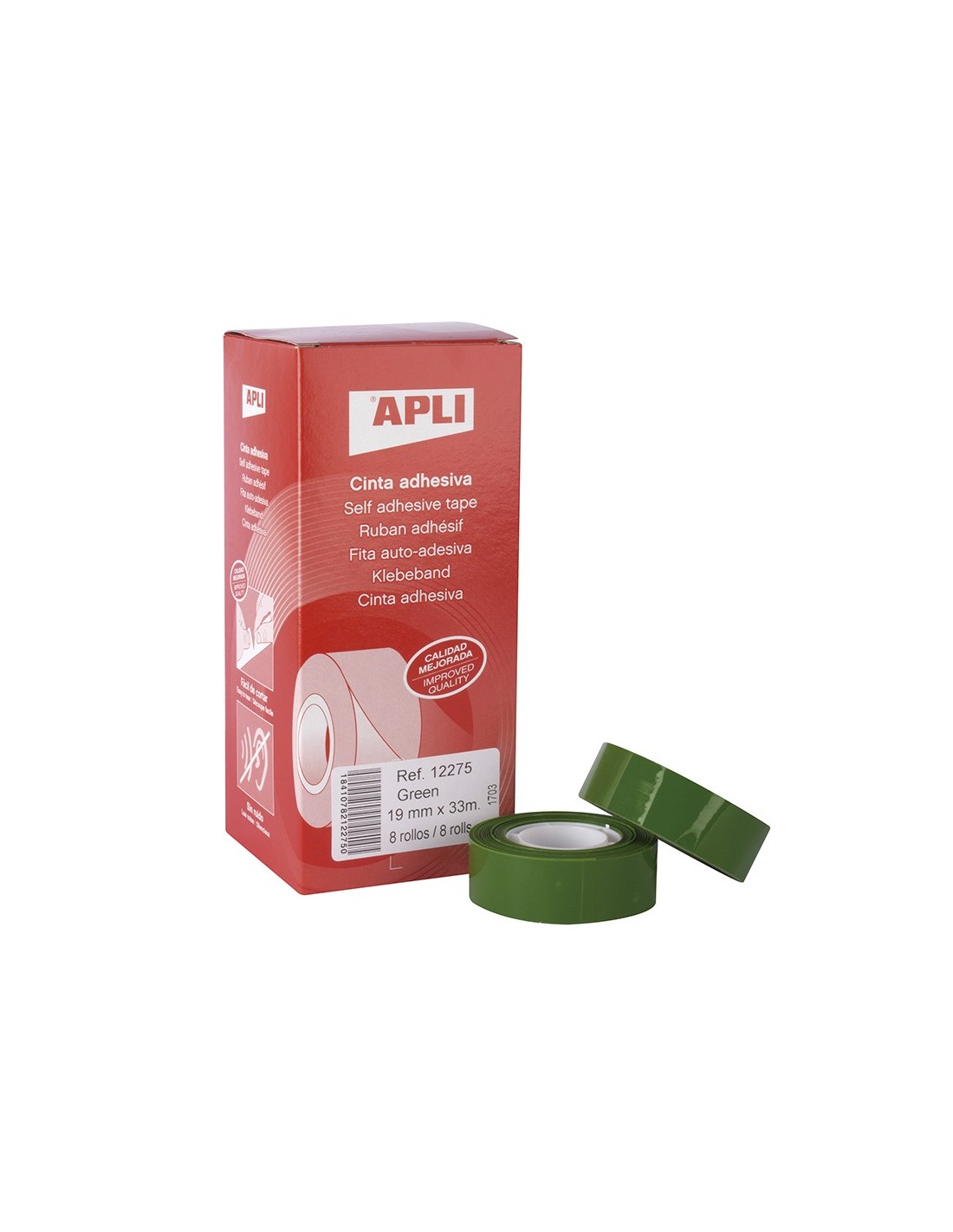 Cinta adhesiva de polipropileno de 28 micras. Silenciosa. Excelentes propiedades de resistencia, sujeción y sellado. Medidas: 33 m x 19 mm.