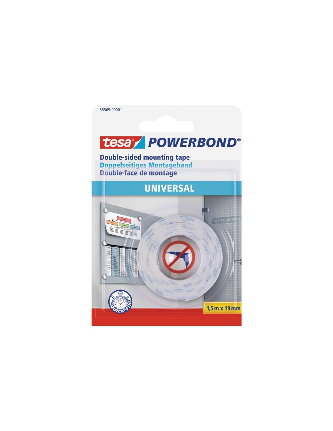 CINTA ADH.TESA DOBLE CARA POWERBOND UNIVERSAL USO INTERIOR 1,5MX19MM