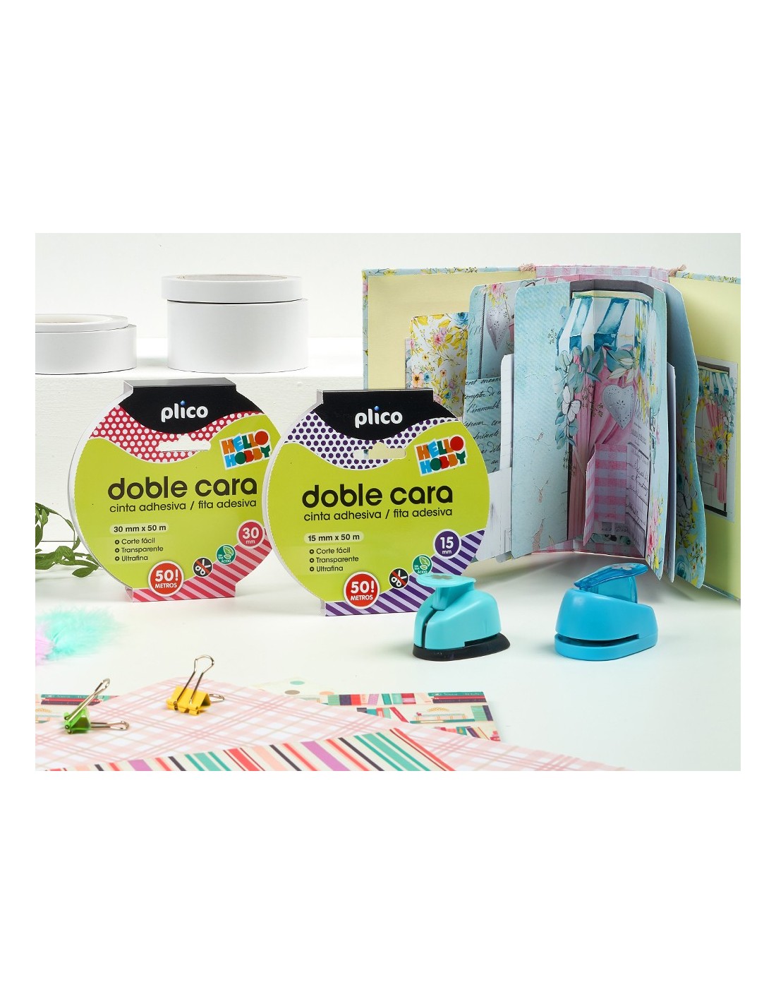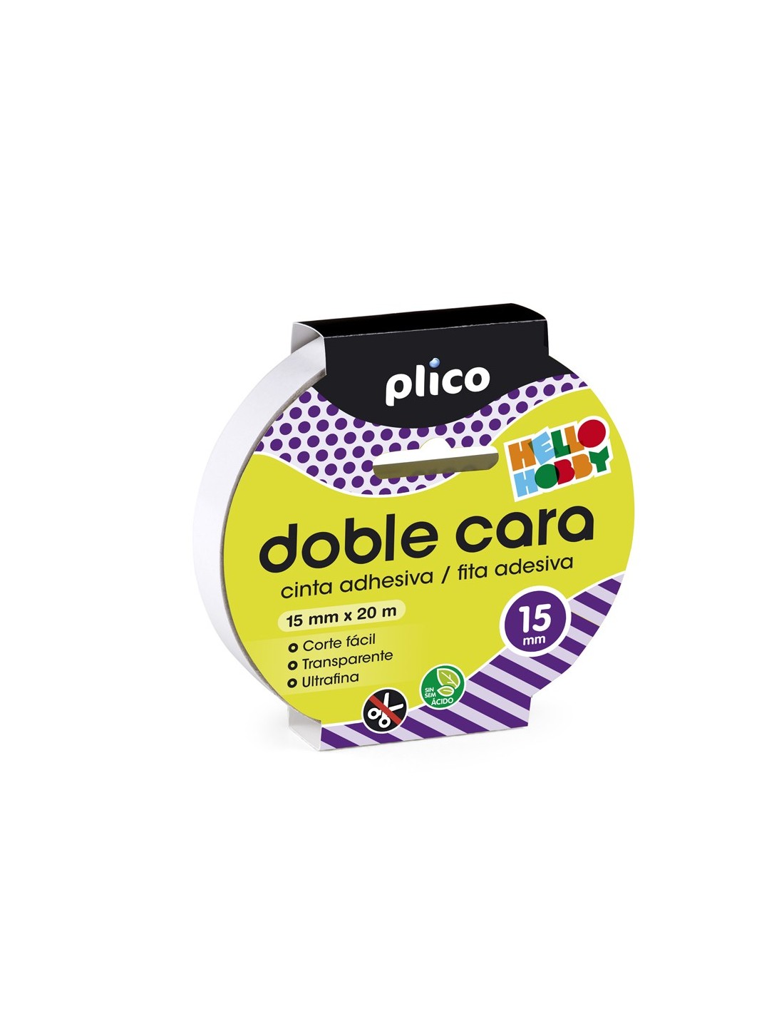 Para crear uniones invisibles, gracias a su fino espesor y acabado transparente. Con una tira de 10 mm, soporta 1 kg de peso. Pega sobre múltiples materiales: textil, goma EVA, cartón, papel. Fácil de cortar. No contiene ácido, no amarillea, no daña fotografías ni otros materiales delicados. Adecuado para uso escolar.