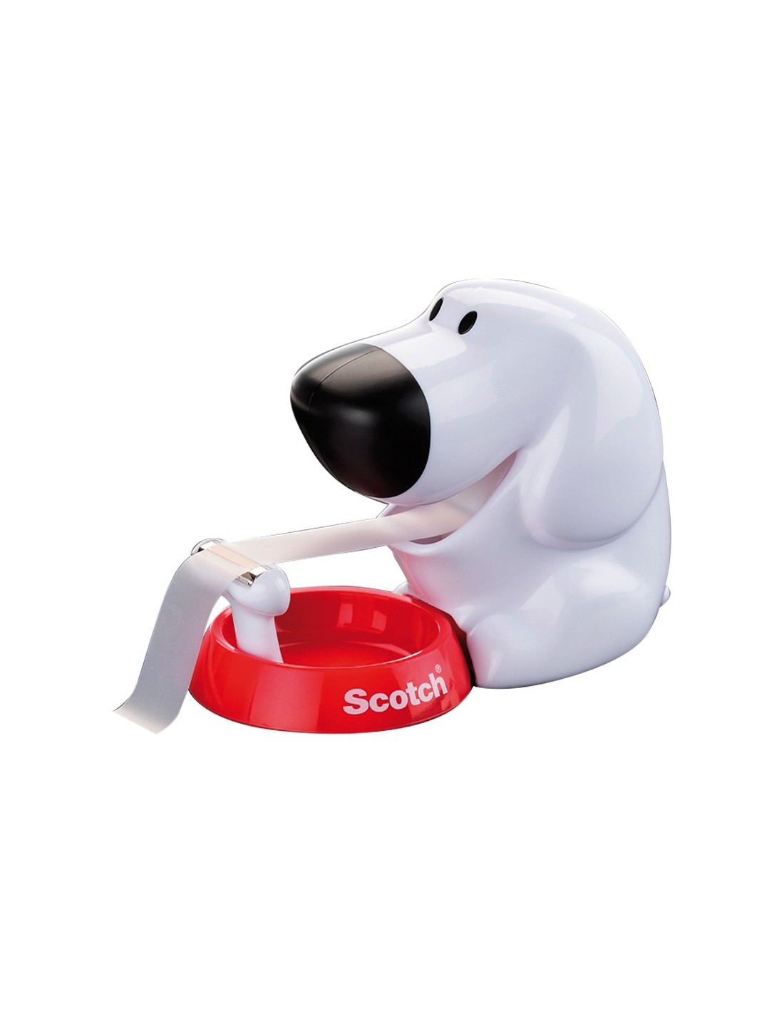 Para cintas de hasta 33 m. Un divertido y original portarrollos en forma de perro, ideal para darle vida al escritorio. Incluye una cinta Scotch® Magic de 8,9 m x 19 mm. Medidas: 100 x 138 x 70 mm.