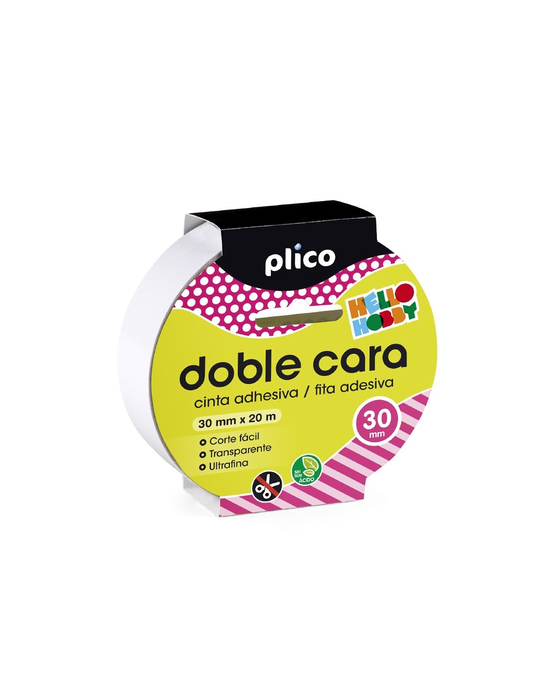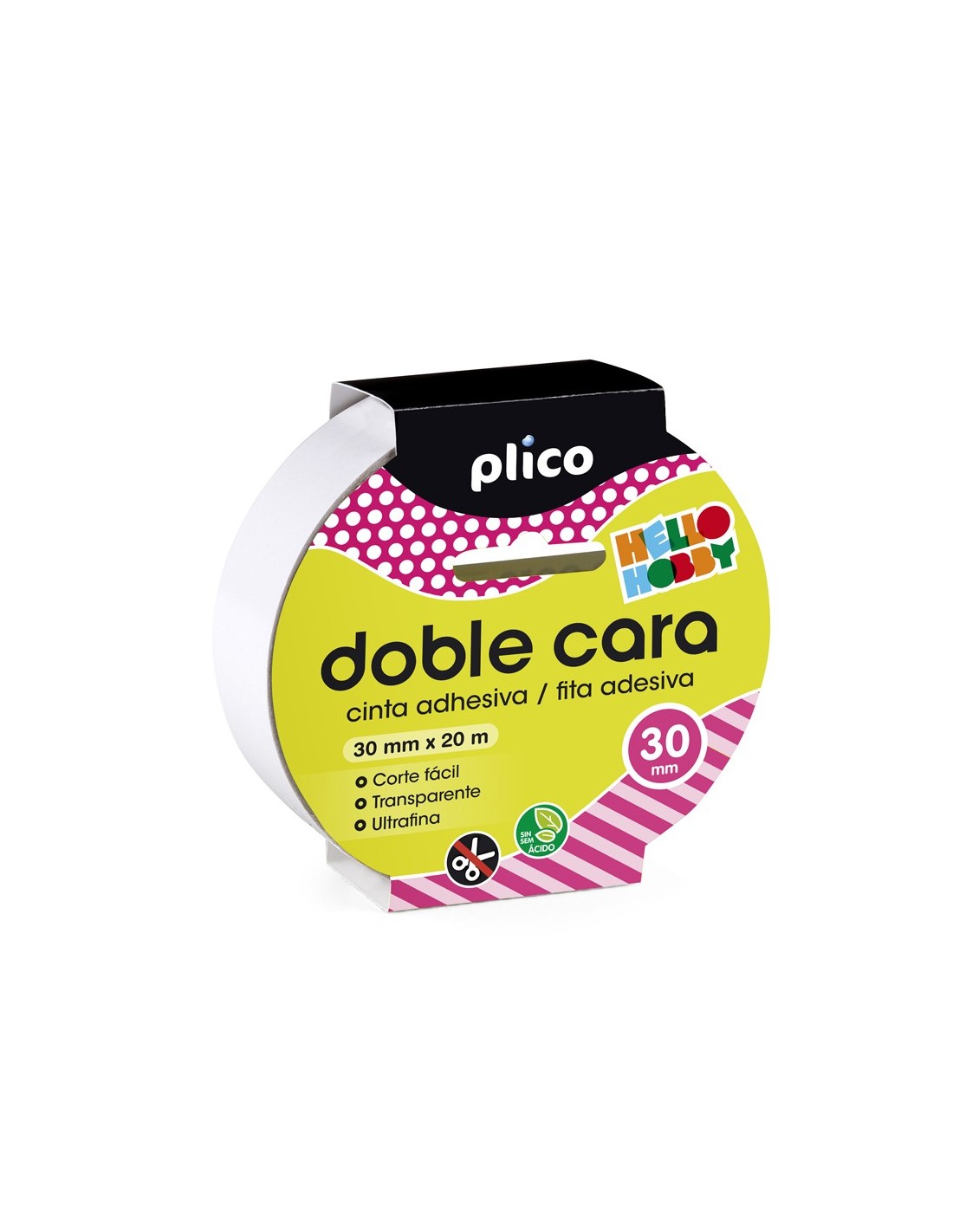 Para crear uniones invisibles, gracias a su fino espesor y acabado transparente. Con una tira de 10 mm, soporta 1 kg de peso. Pega sobre múltiples materiales: textil, goma EVA, cartón, papel. Fácil de cortar. No contiene ácido, no amarillea, no daña fotografías ni otros materiales delicados. Adecuado para uso escolar.