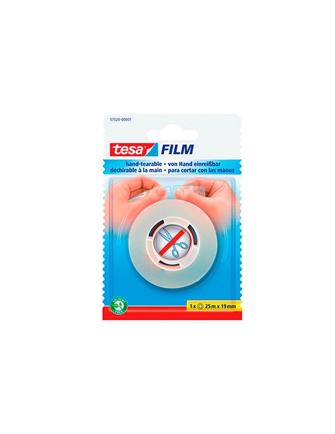 Se corta facilmente con las manos. Transparente. Película de polipropileno. Adhesión fuerte y alta resistencia al paso del tiempo. Adhesivo sin disolventes. Medidas: 25 m x 19 mm.
