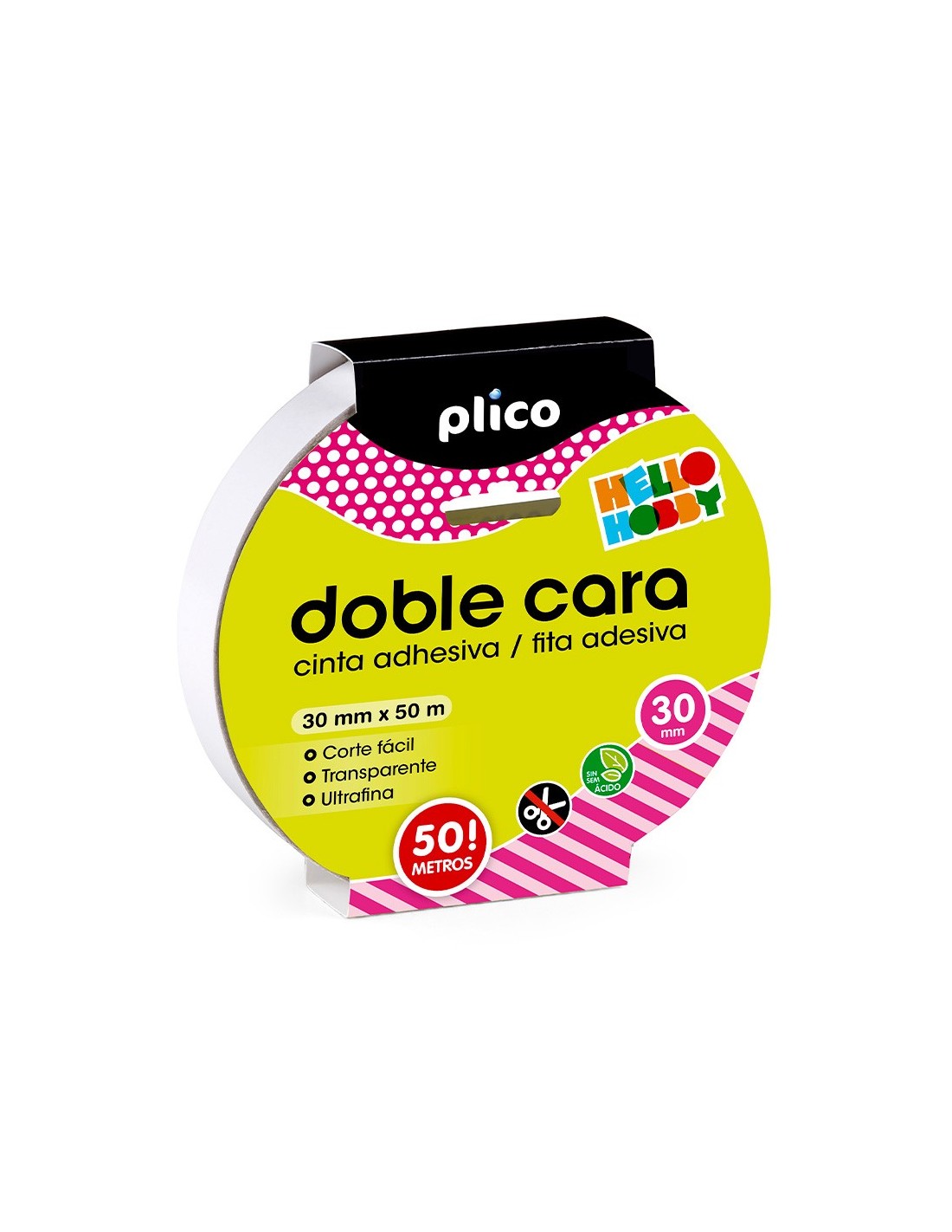 Cinta de doble cara ideal para todas las manualidades realizadas con Goma EVA cartón, papel, textiles y cualquier trabajo de scrapbooking. No amarillea, al no contener ácido. Se corta fácilmente sin tijeras y resulta prácticamente imperceptible al ser ultra fina. 50 mt x 30 mm.