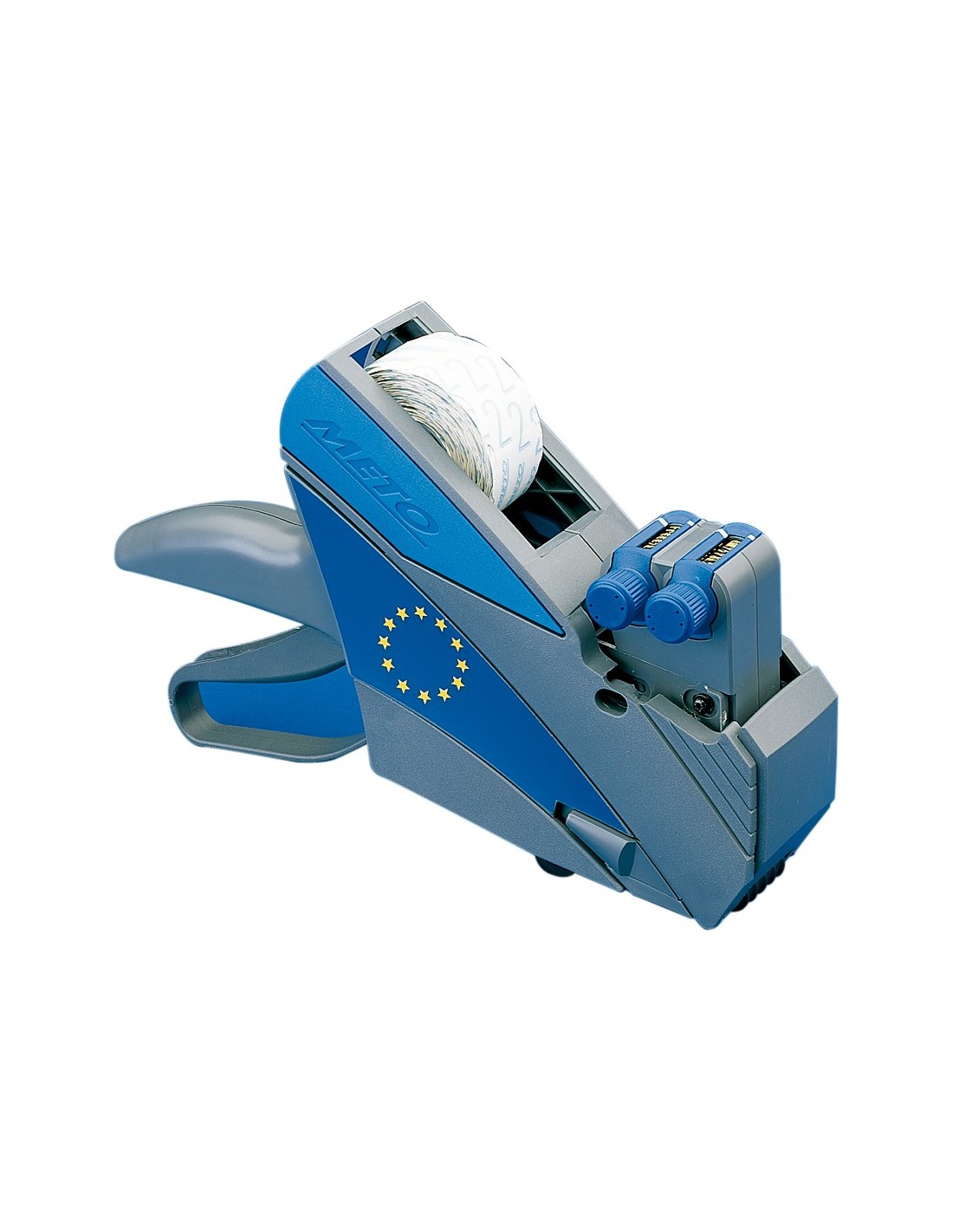 Máquina etiquetadora de dos líneas y de 9 dígitos (2ª línea) y 12 dígitos (1ª línea). Fabricada en plástico Lurán irrompible. Diseño ergonómico para hacer más fácil su uso. Útil para marcar productos. Dos rodillos. Usa etiquetas de 32 x 19 mm. 1 rollo incluido. Medidas: 60 x 240 x 24 mm. Peso: 511 g.